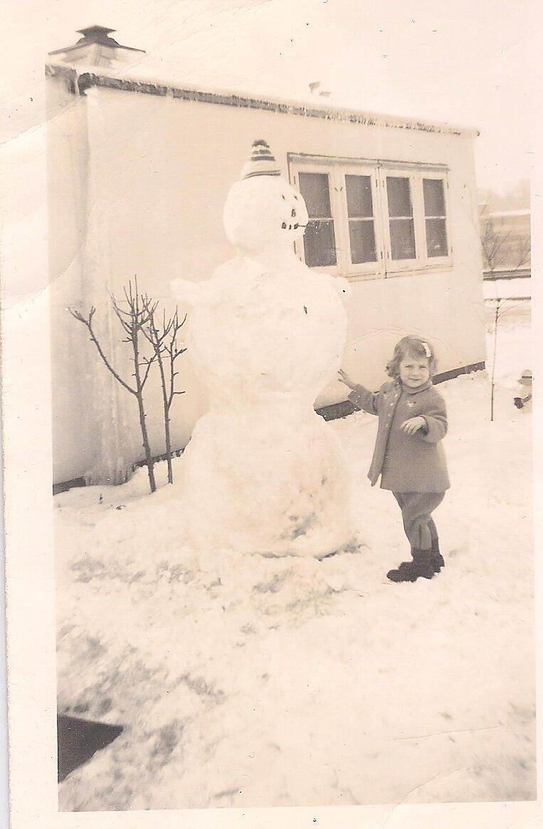 Child building a snowman.