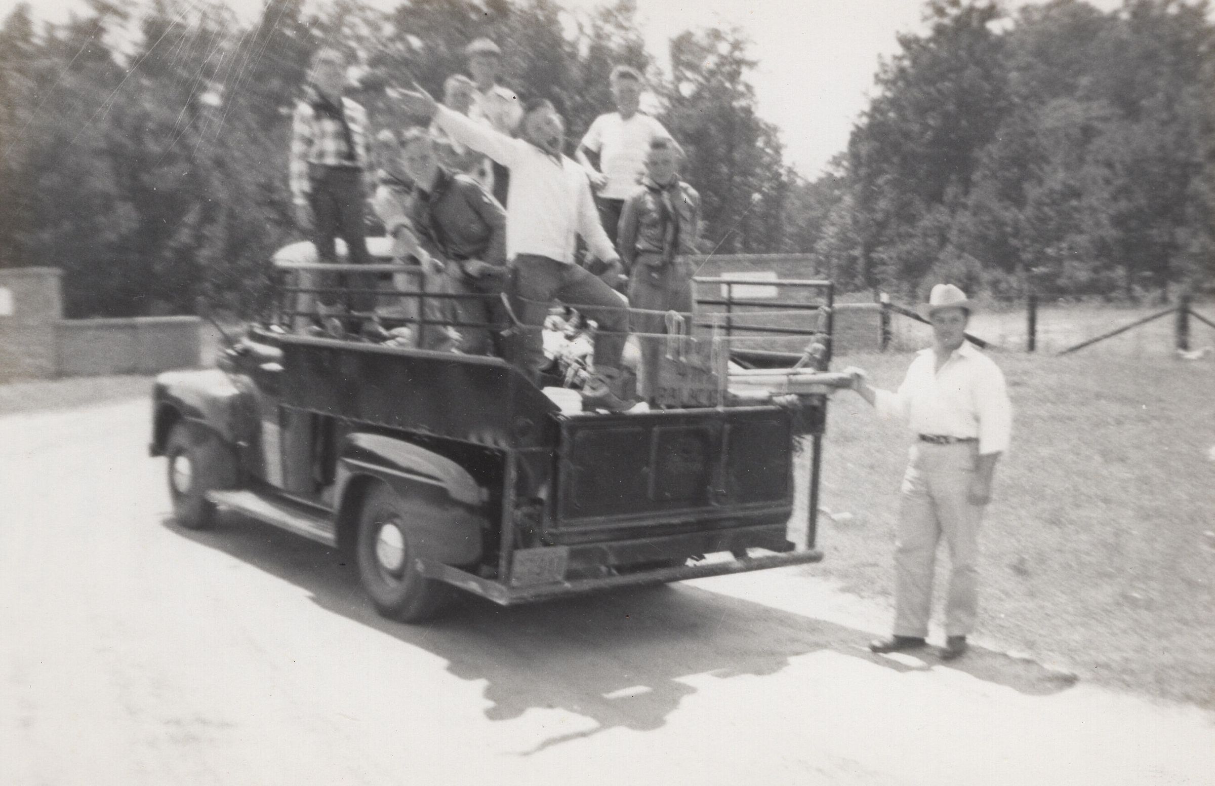 Group of Boys standing in bed of pick-up