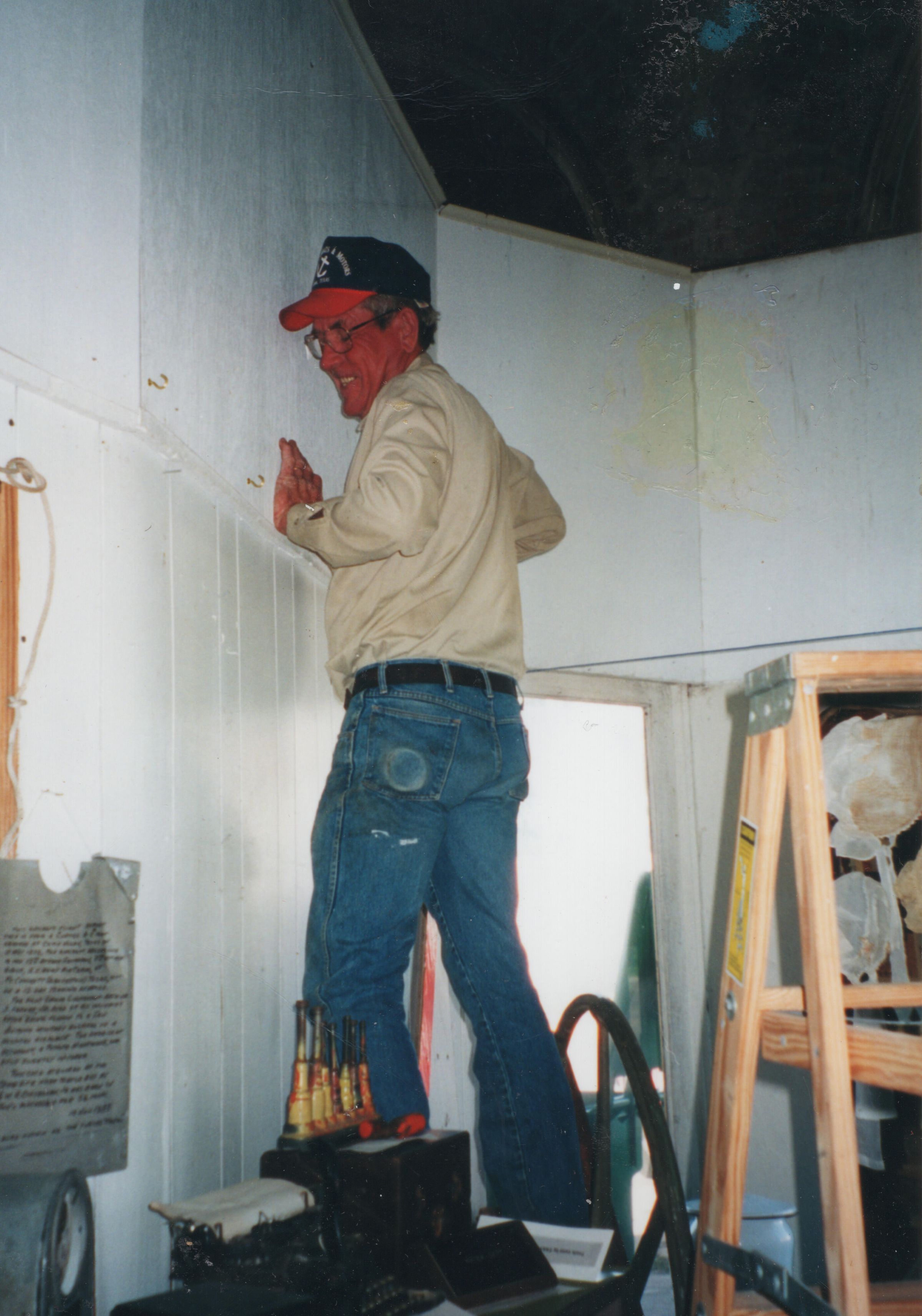 Dave Anderson hanging pictures for Museum Exhibits.