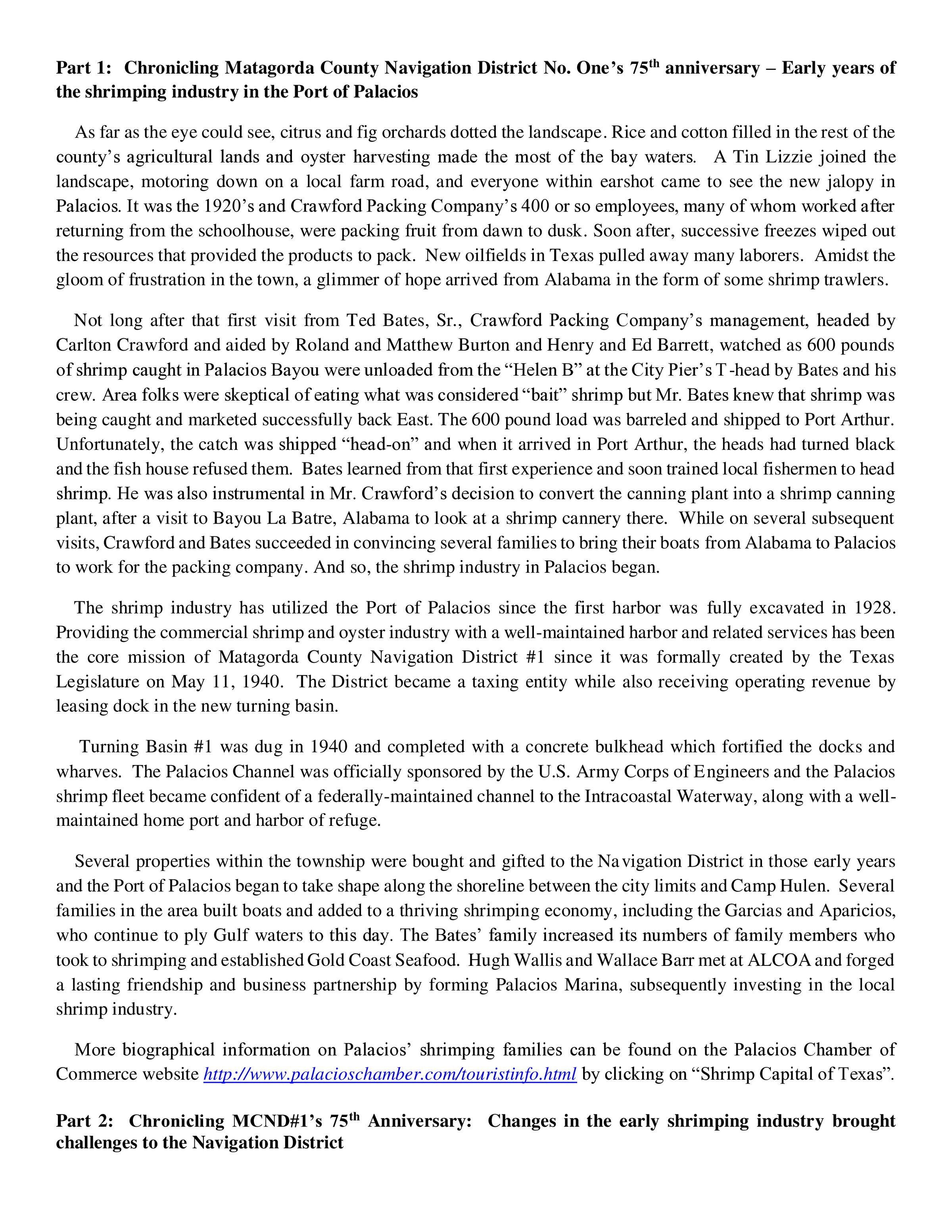 History of Matagorda Navigation District