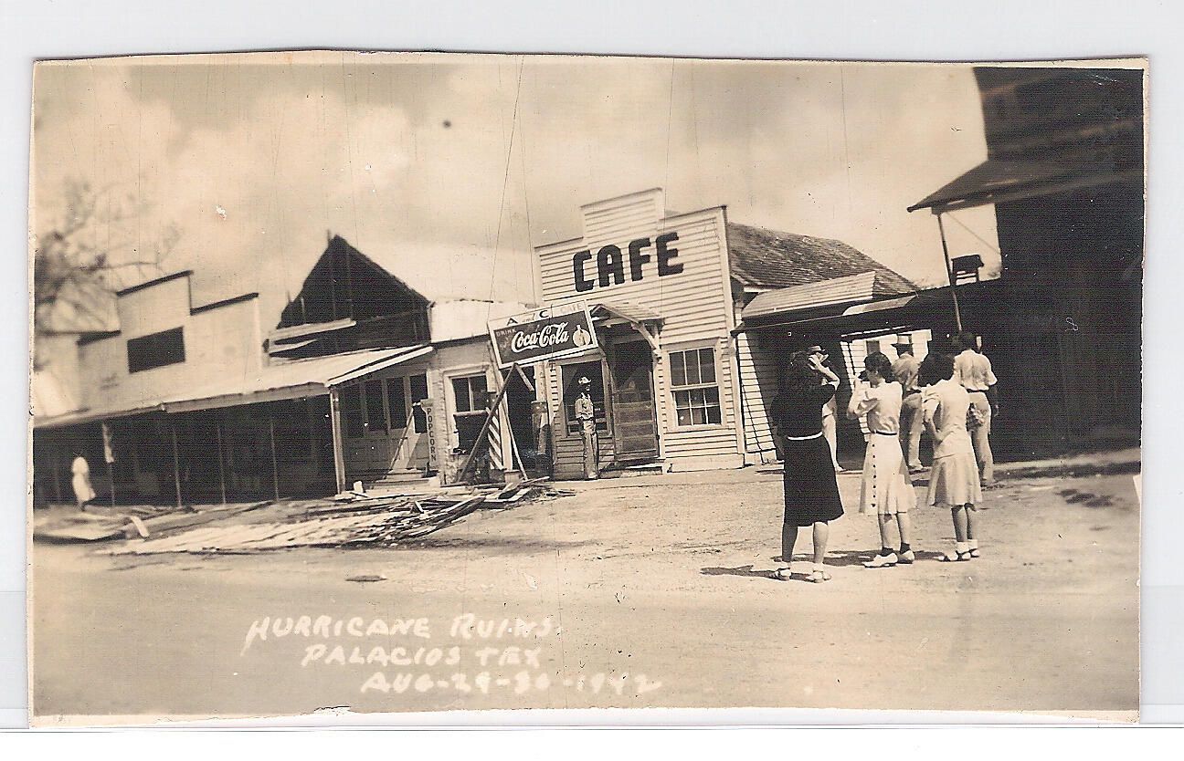 1942 Hurricane damage of Cafe on Main Street.