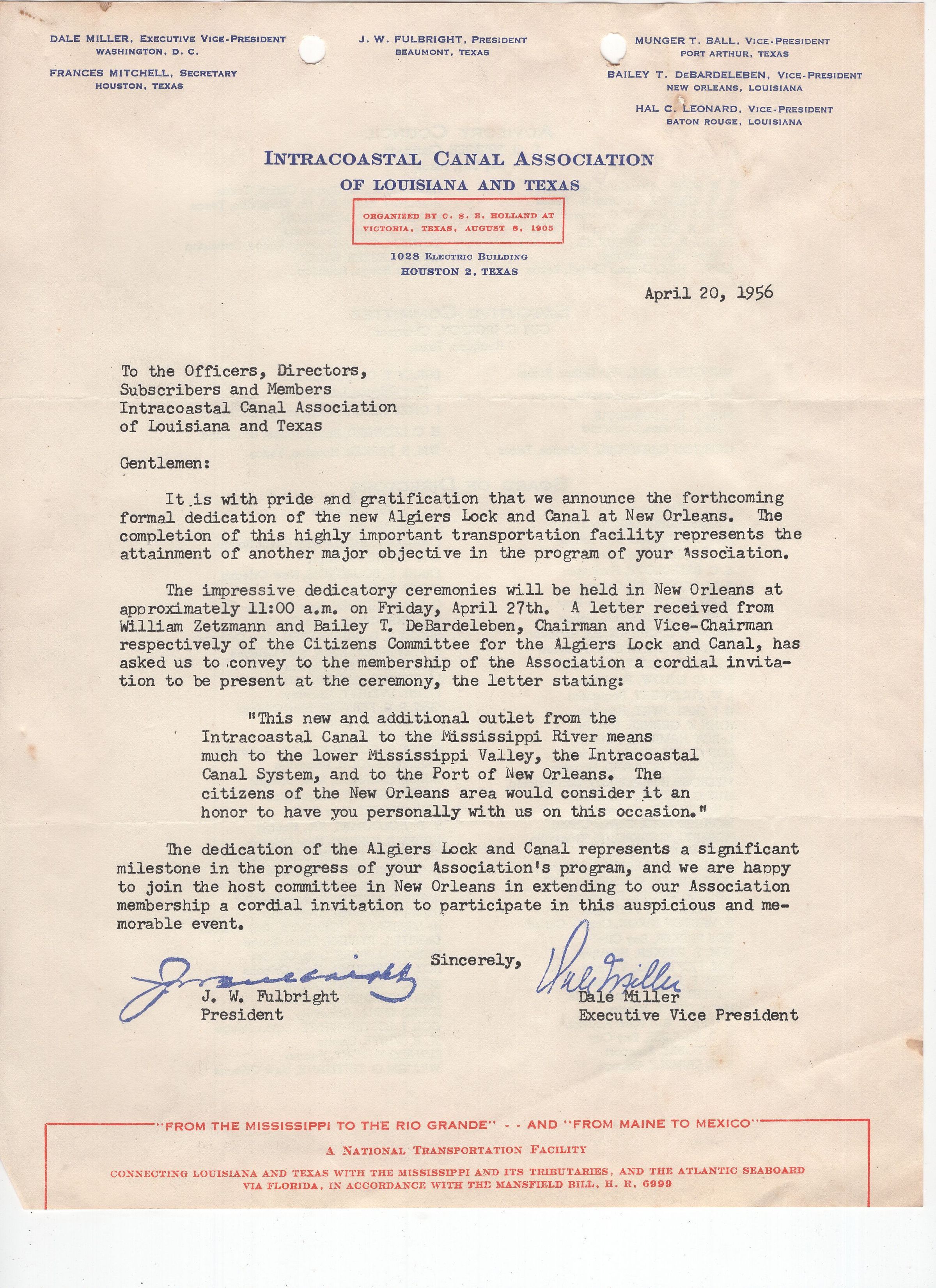 Intracoastal Canal Association Letter