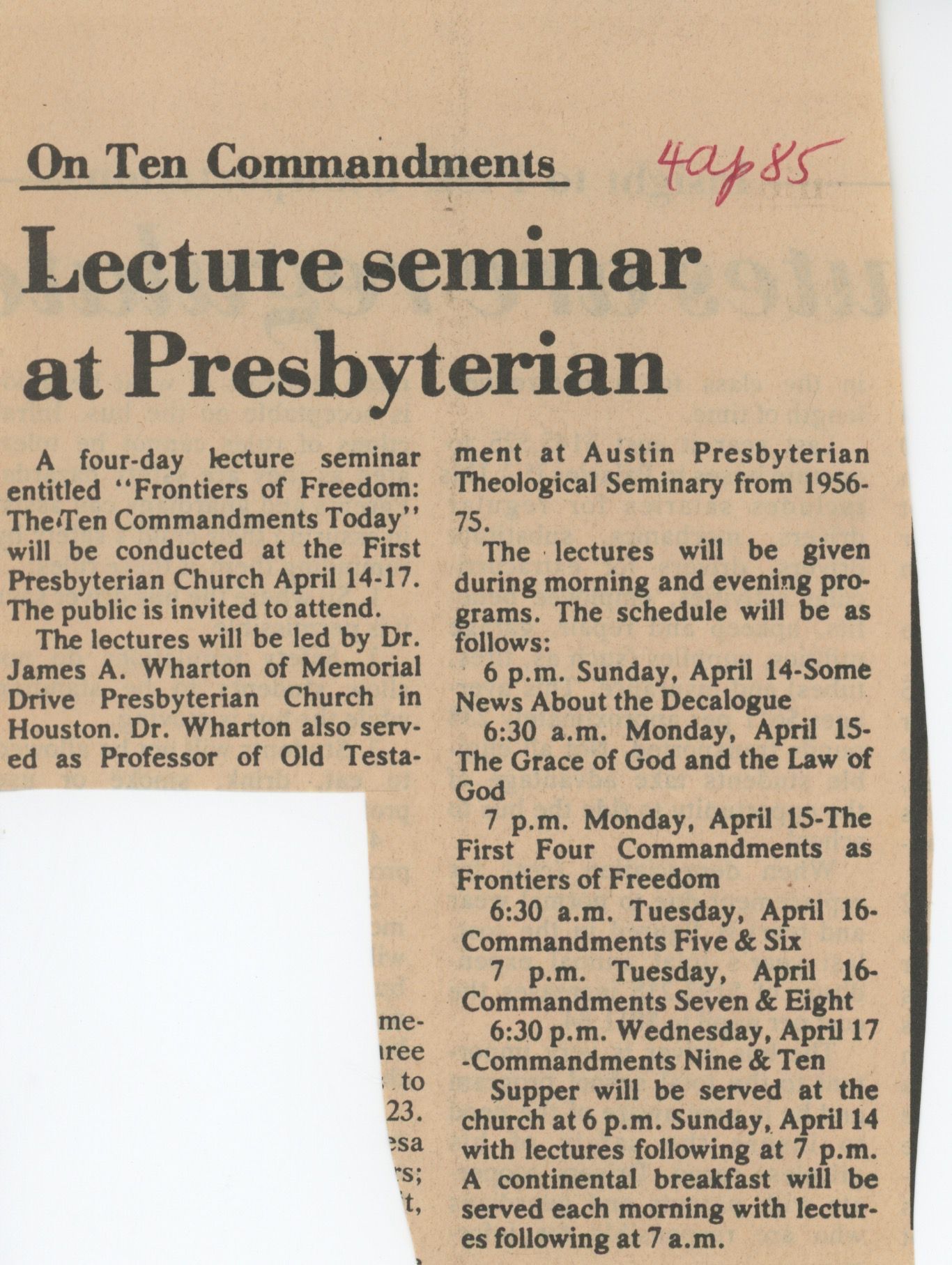 Lecture Seminar at Presbyterian