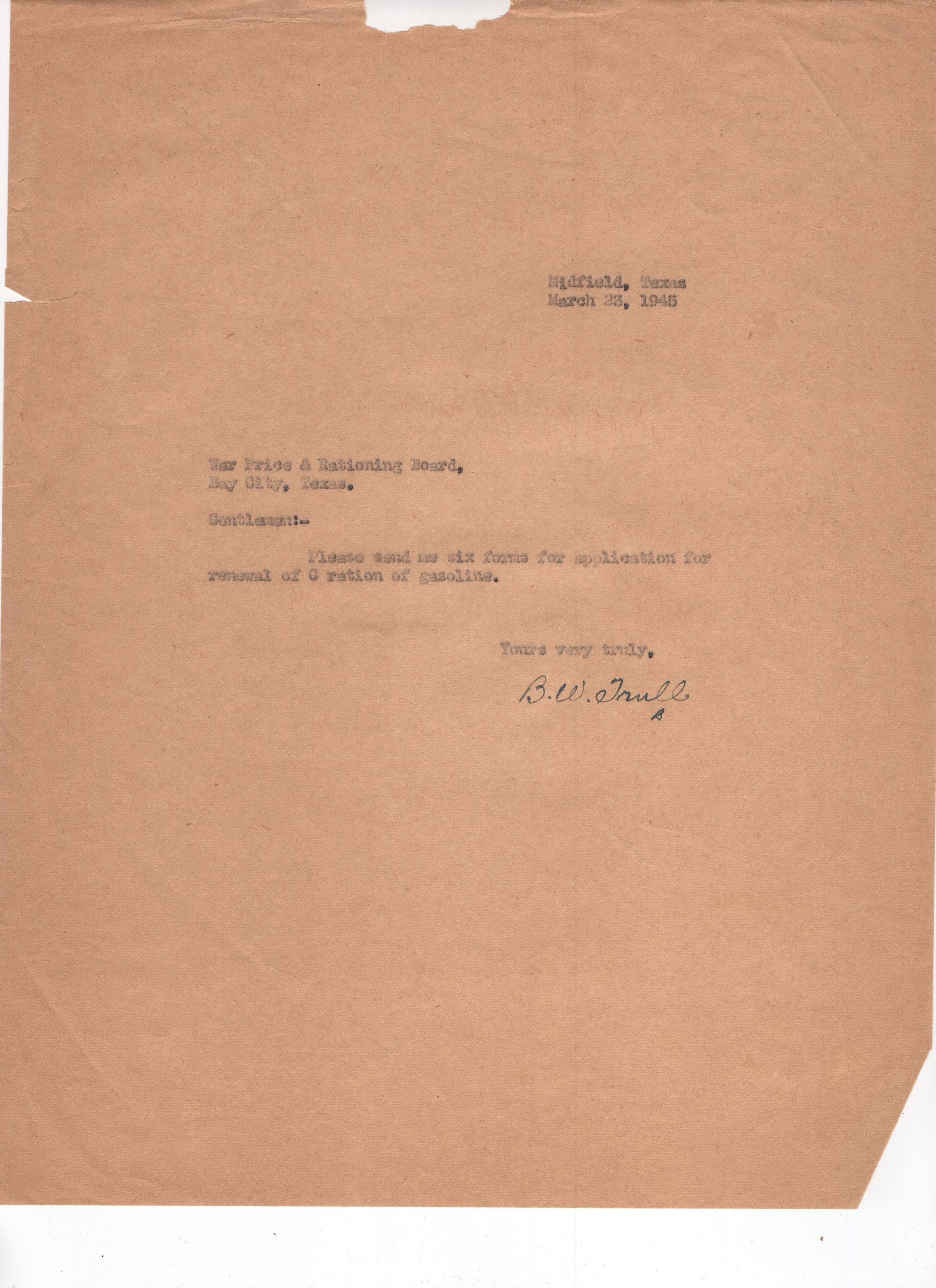 Letter asking for 6 forms of applications for renewal of Ration C and gasoline.