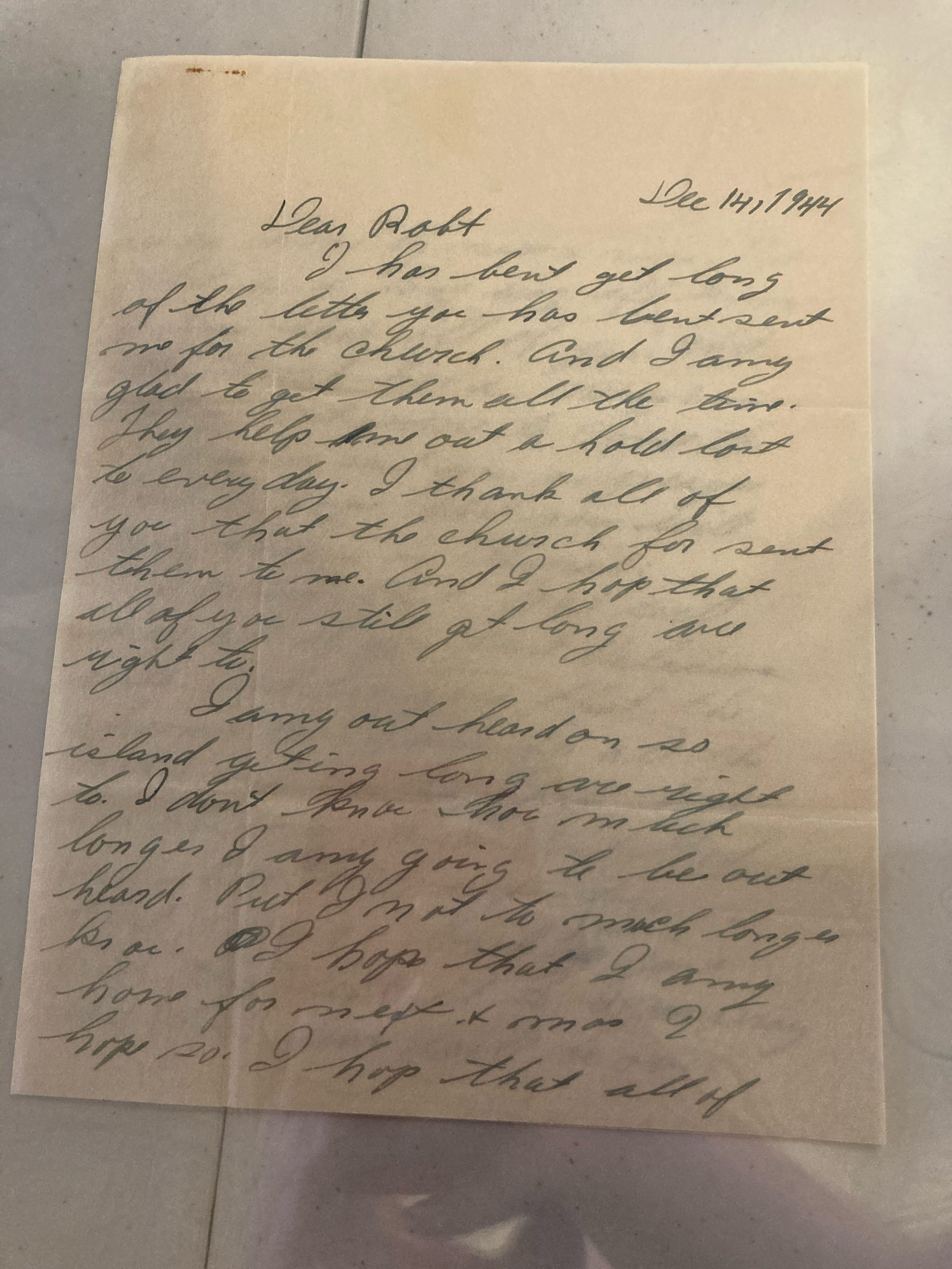 Letter Emmett J. Chiles[?] Jr. to "Robt" 14 Dec. 1944Context