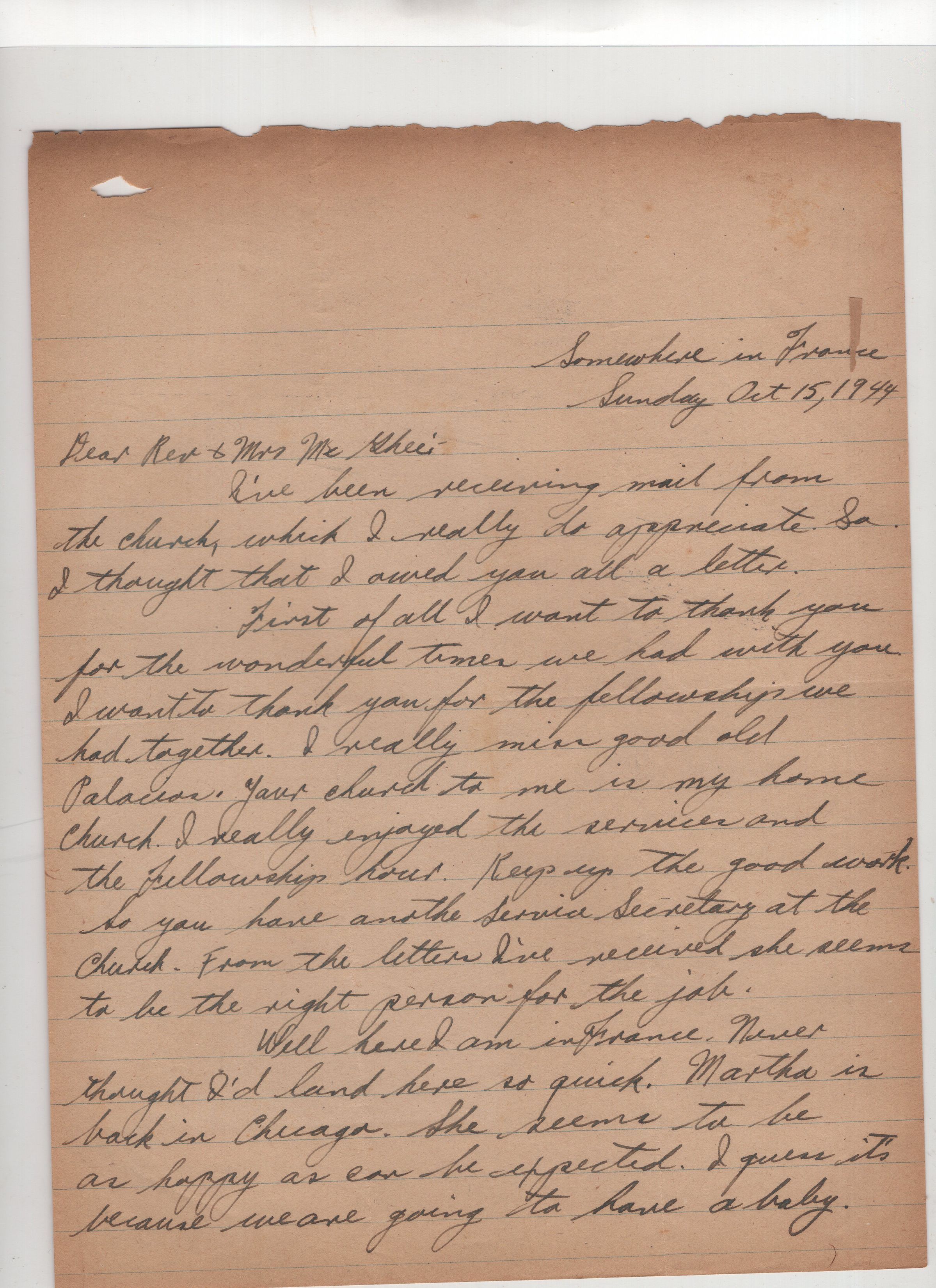 Letter Kenneth Vander Waude to Rev & Mrs. McGehee 1944