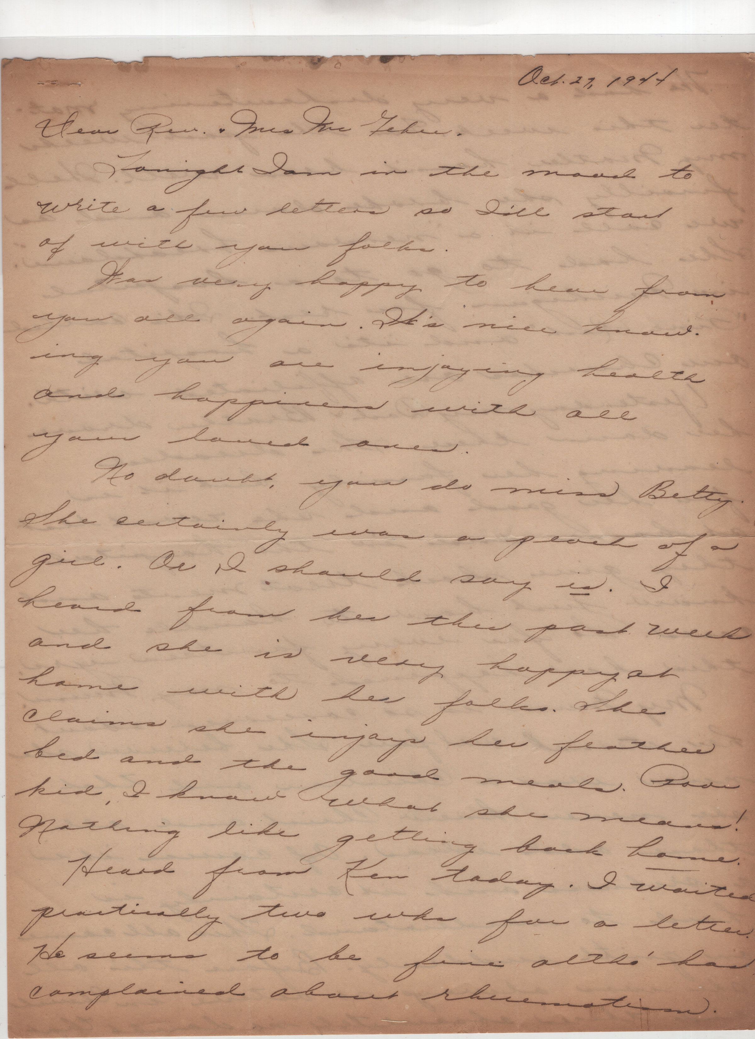 27 Oct. 1944; 2 full handwritten pages front and back