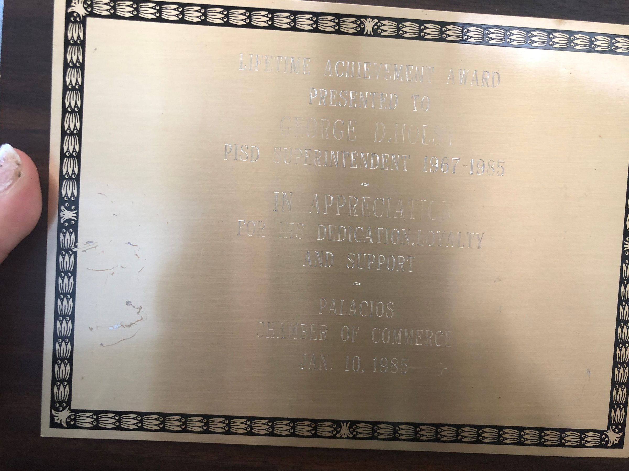 PISD Superintendent 1967-1985 | In Appreciation for his dedication and support from the Chamber of Commerce