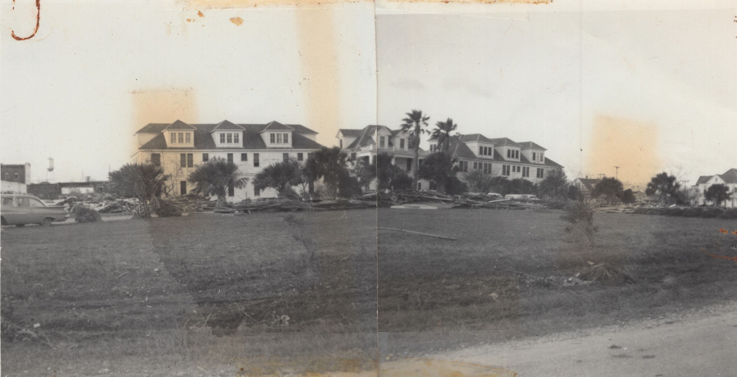 Debris pile in front of Luther Hotel.