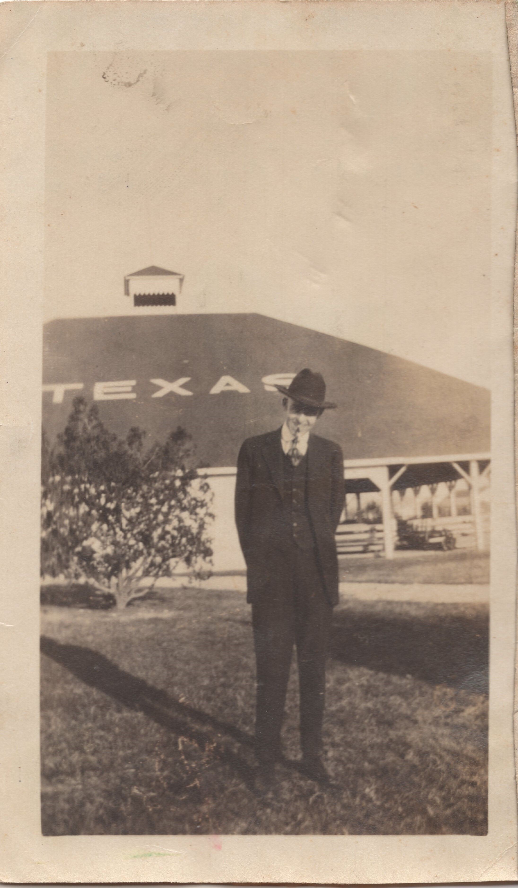 Man Standing in front of 'Texas'