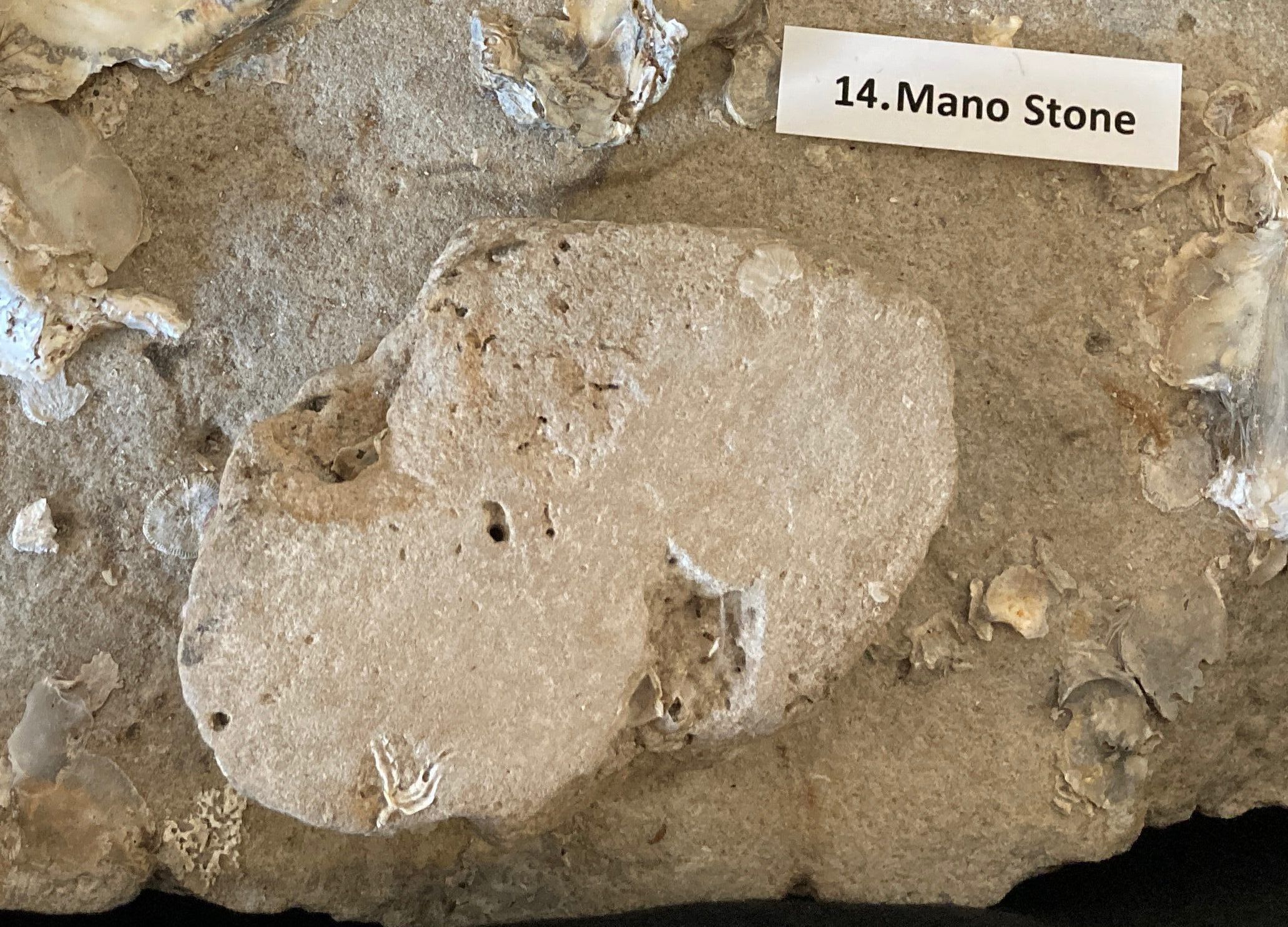 Mano Stone is a tool used with a metate to grind grains or seeds.