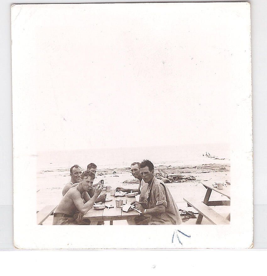 Camp Hulen. Men eating on Picnic Tables