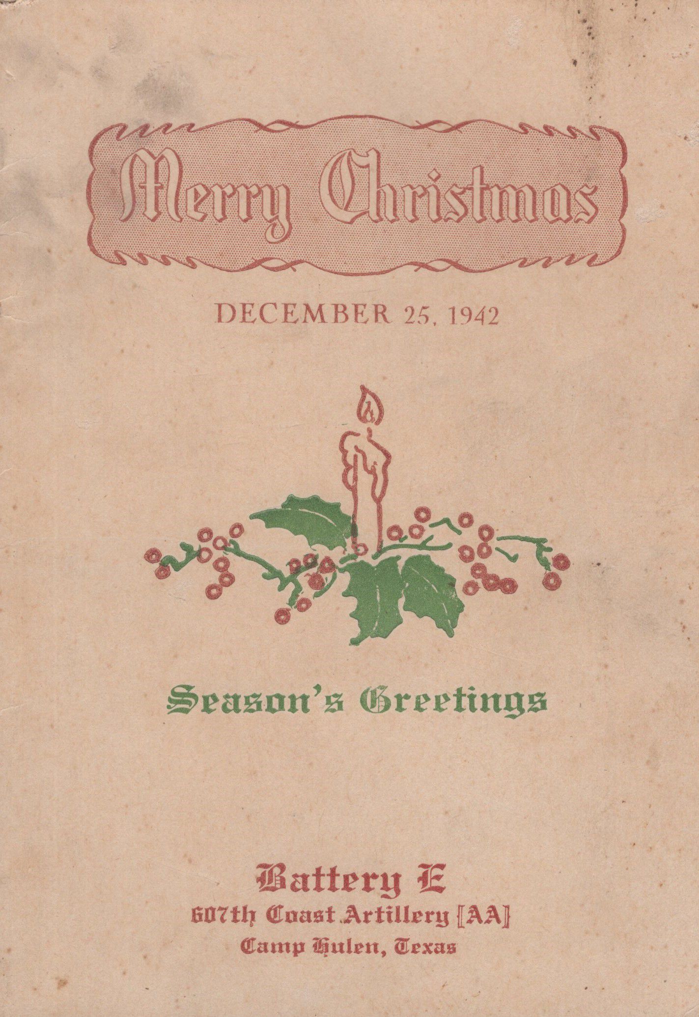 Merry Christmas Dinner Menu