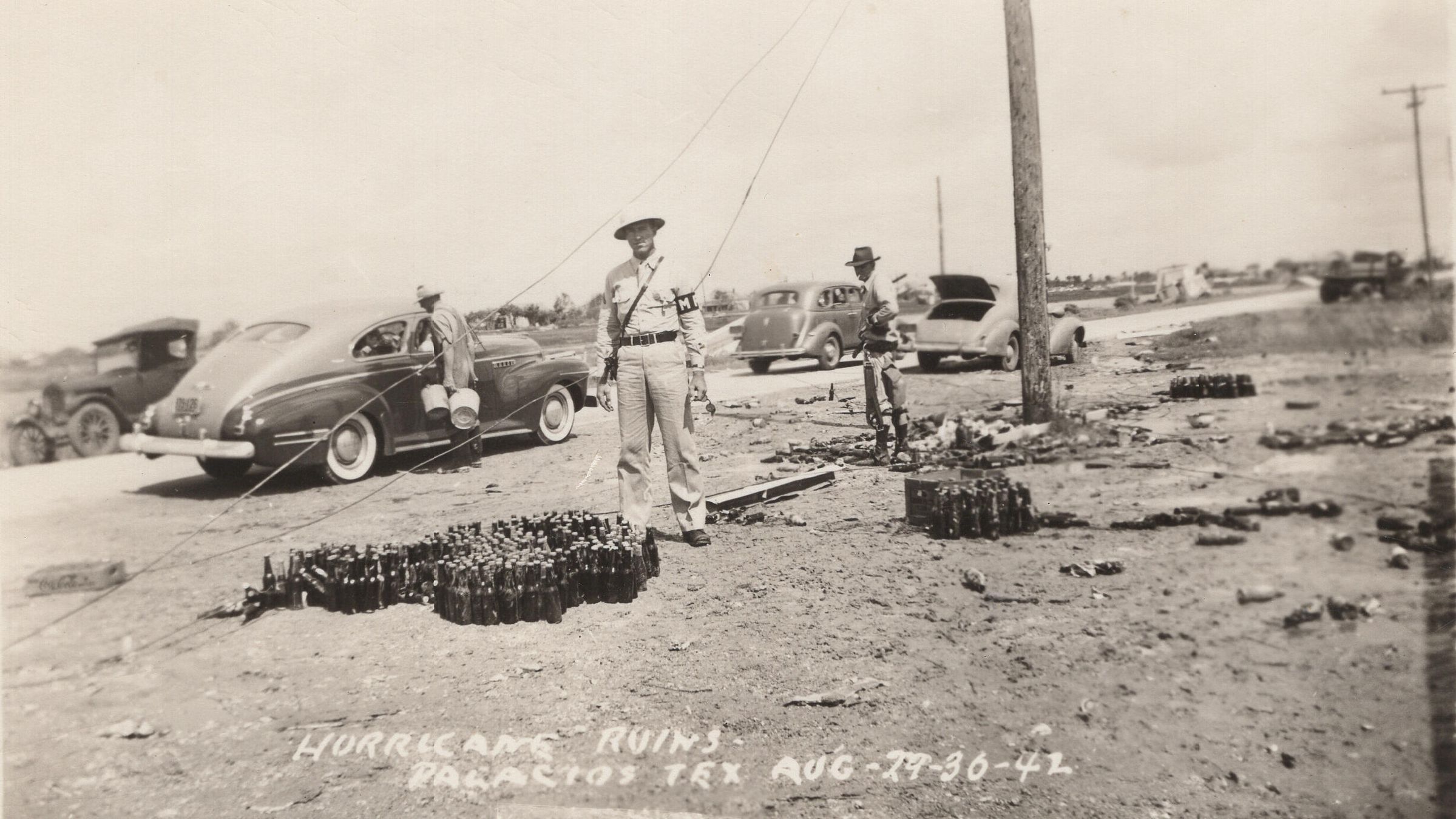 Military Police standing in front of glass bottles