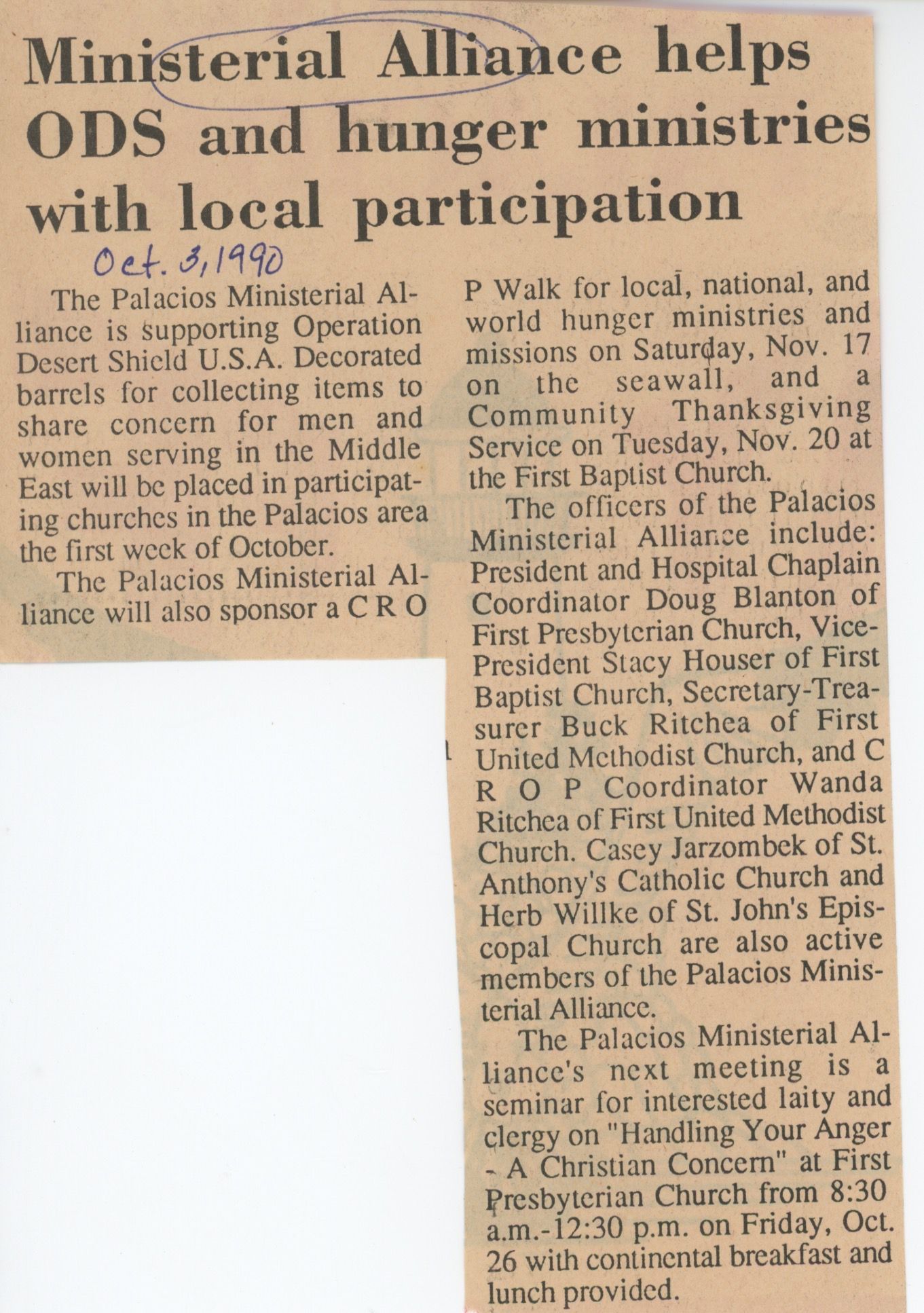 Ministerial Alliance helps ODS and hunger ministries with local participation