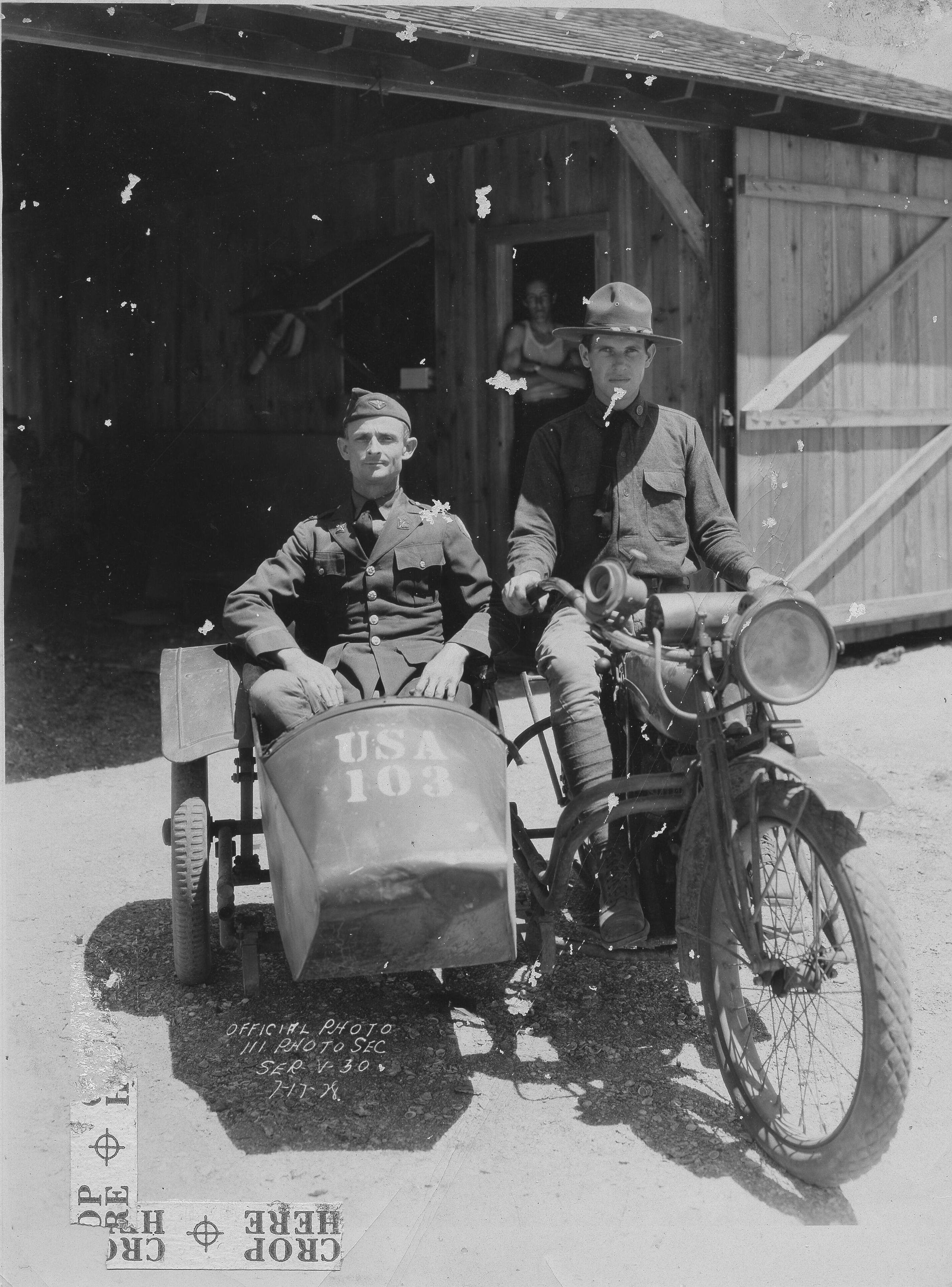 Men on motorcycle.
