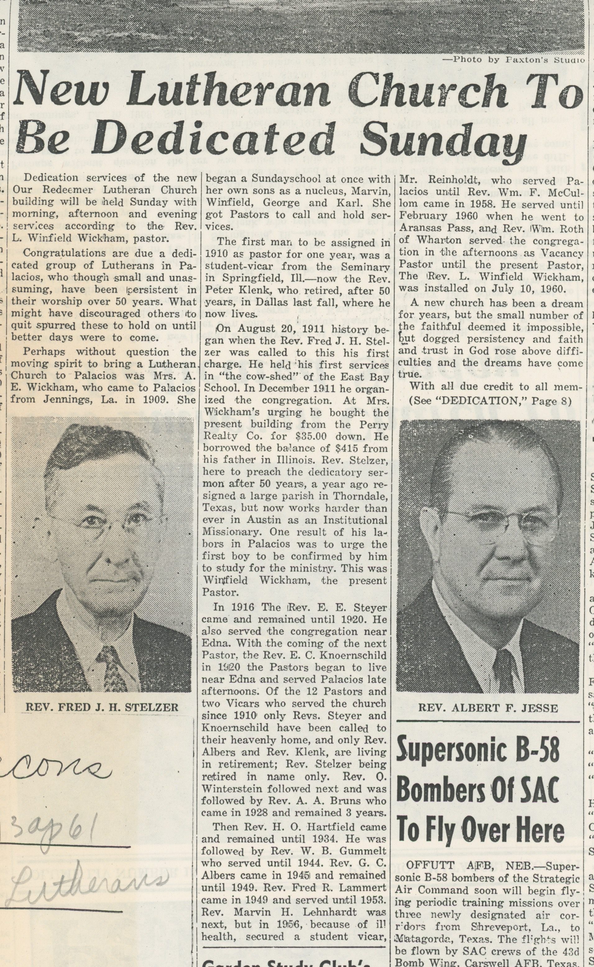 New Lutheran Church to be Dedicated Sunday