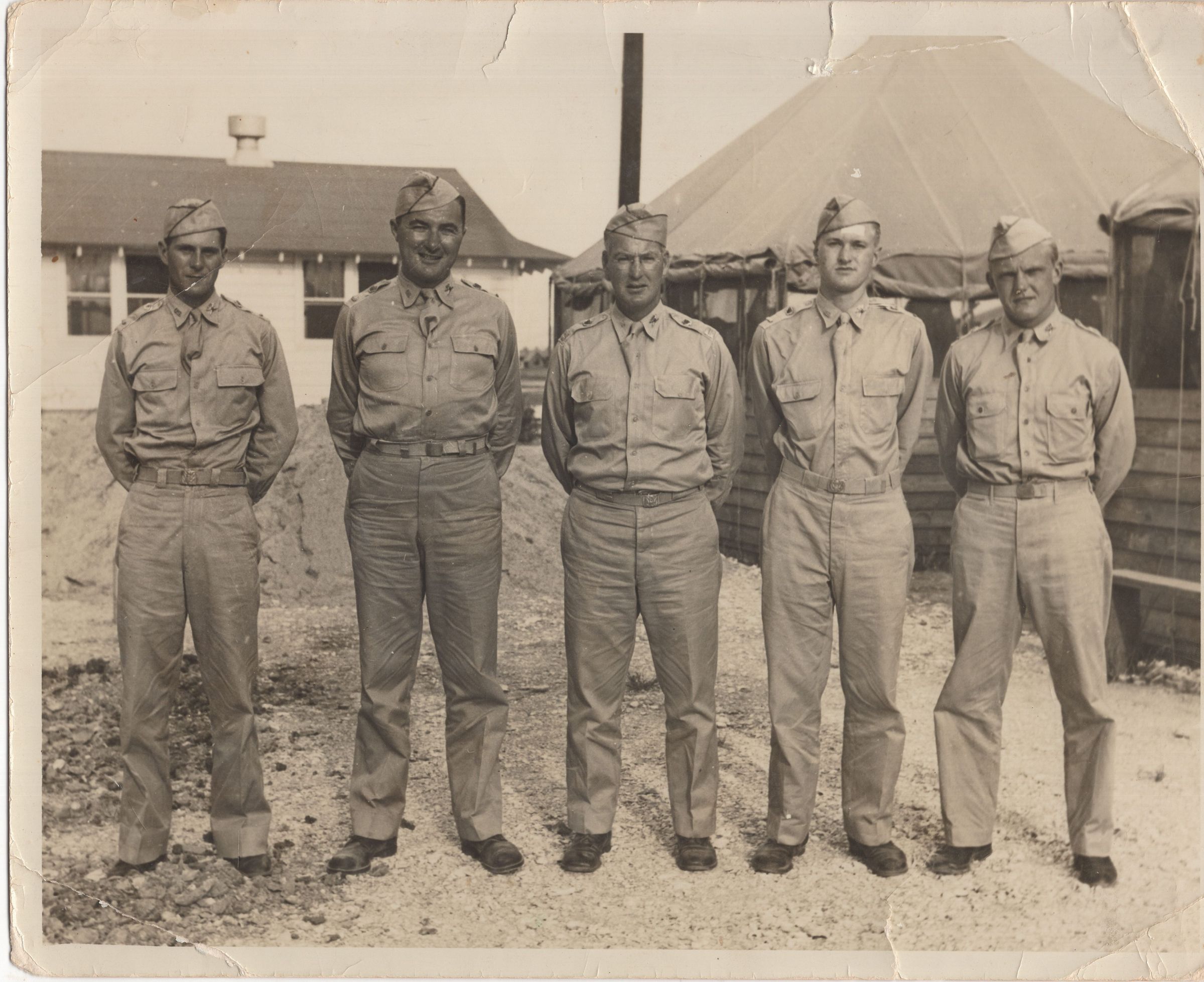 A group of officers standing near tents.