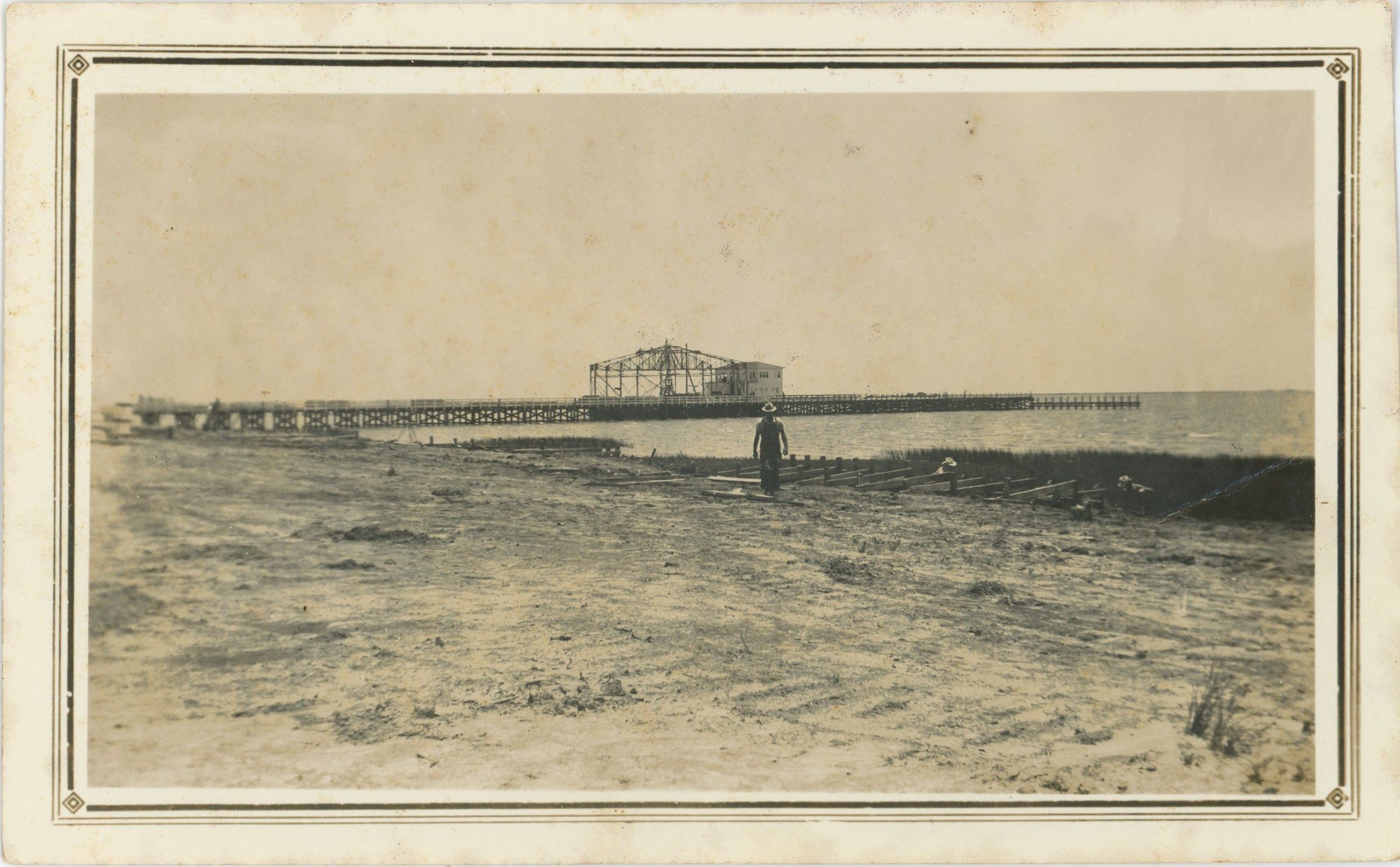 1935 Pavilion, View from shore, Seawall construction