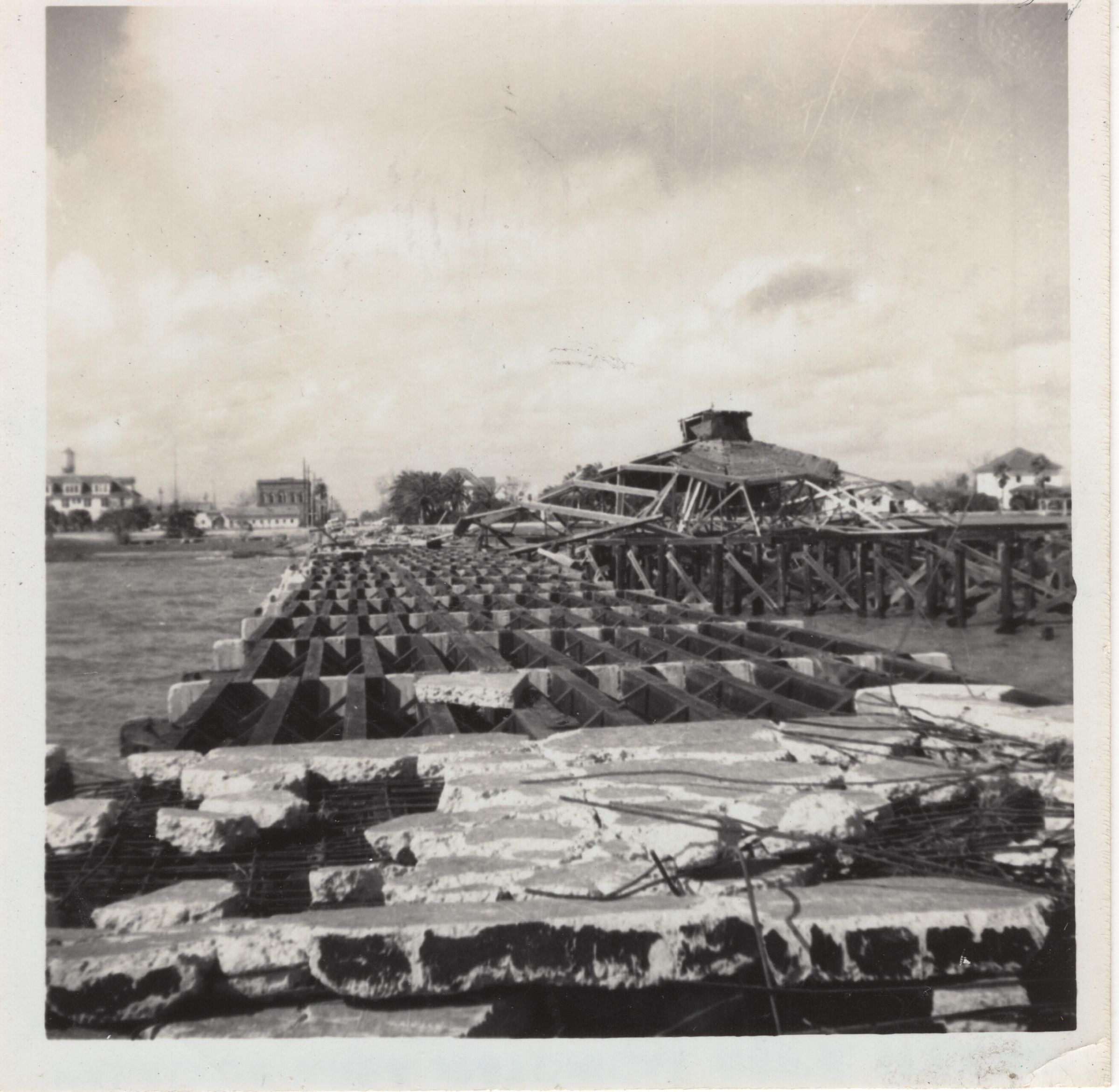 Hurricane Carla Destroyed Pavilion. View looking towards Luther Hotel and Hill Building.