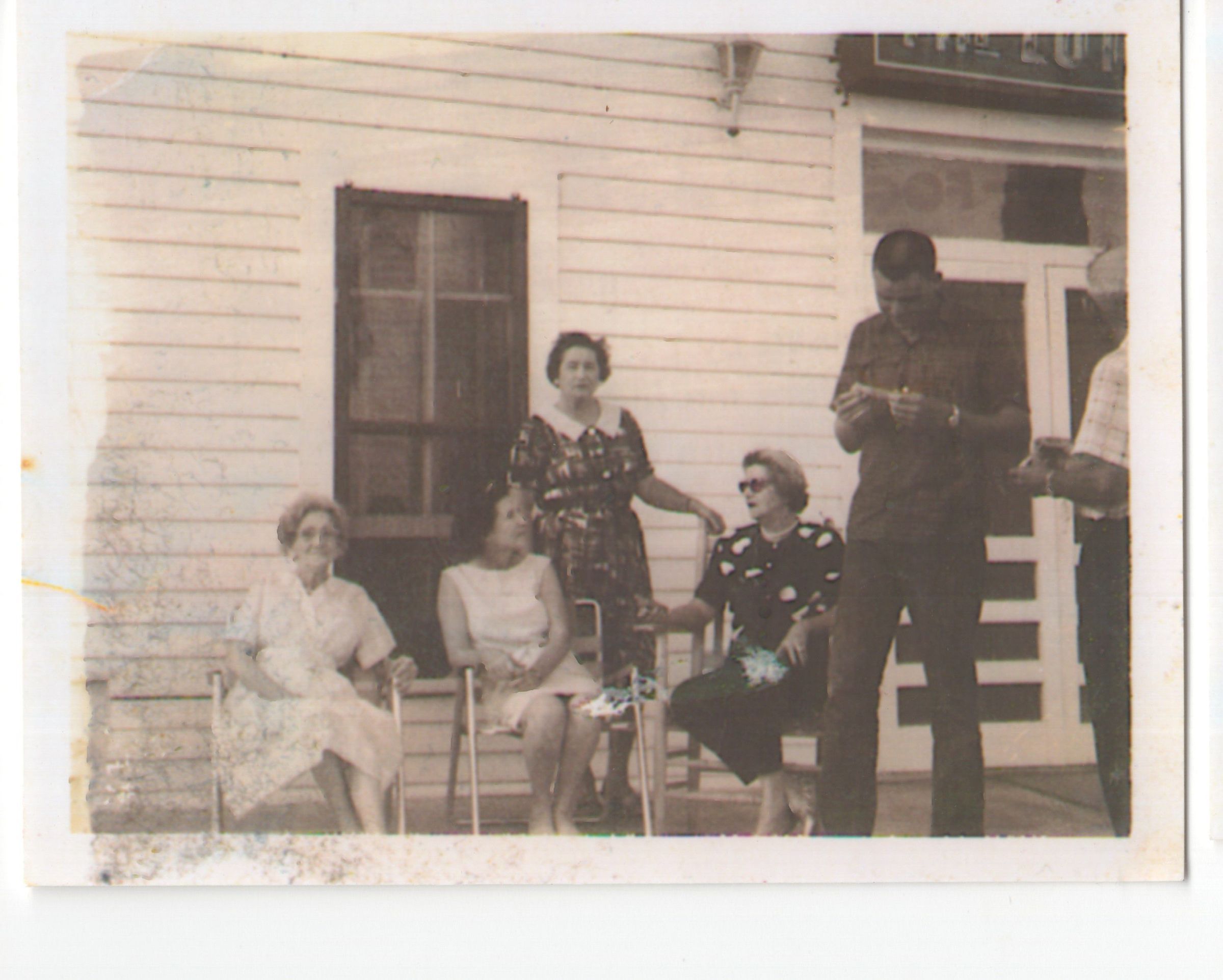 People on the front porch of the Luther Hotel