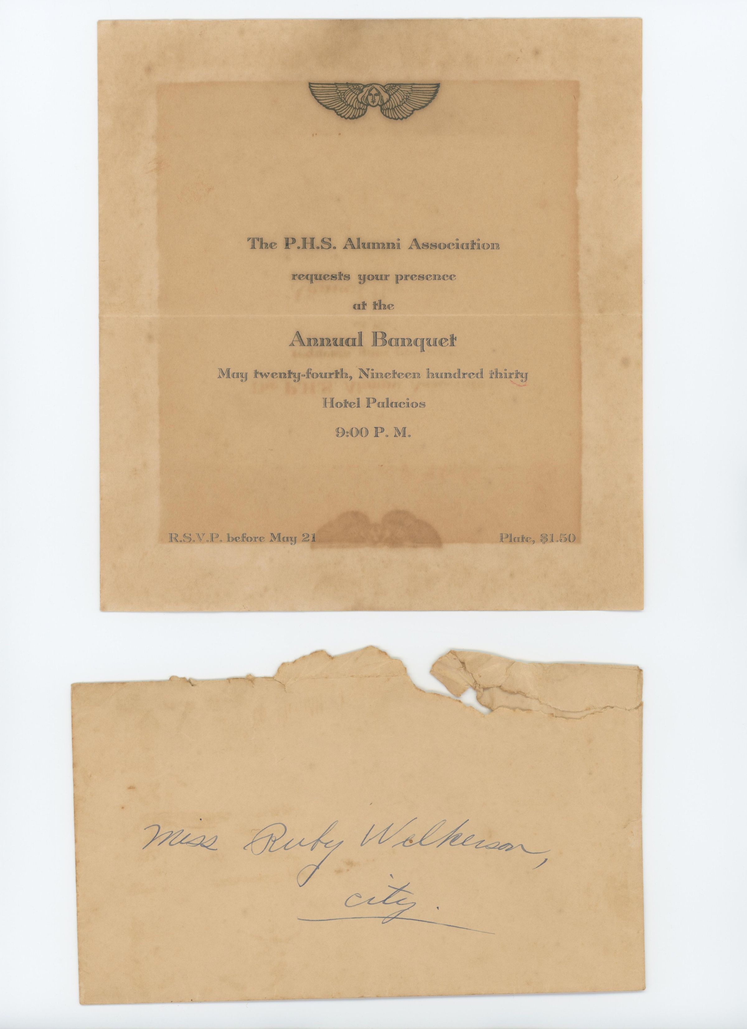 An invitation to the PHS Alumni Banquet for Ruby Wilkerson.