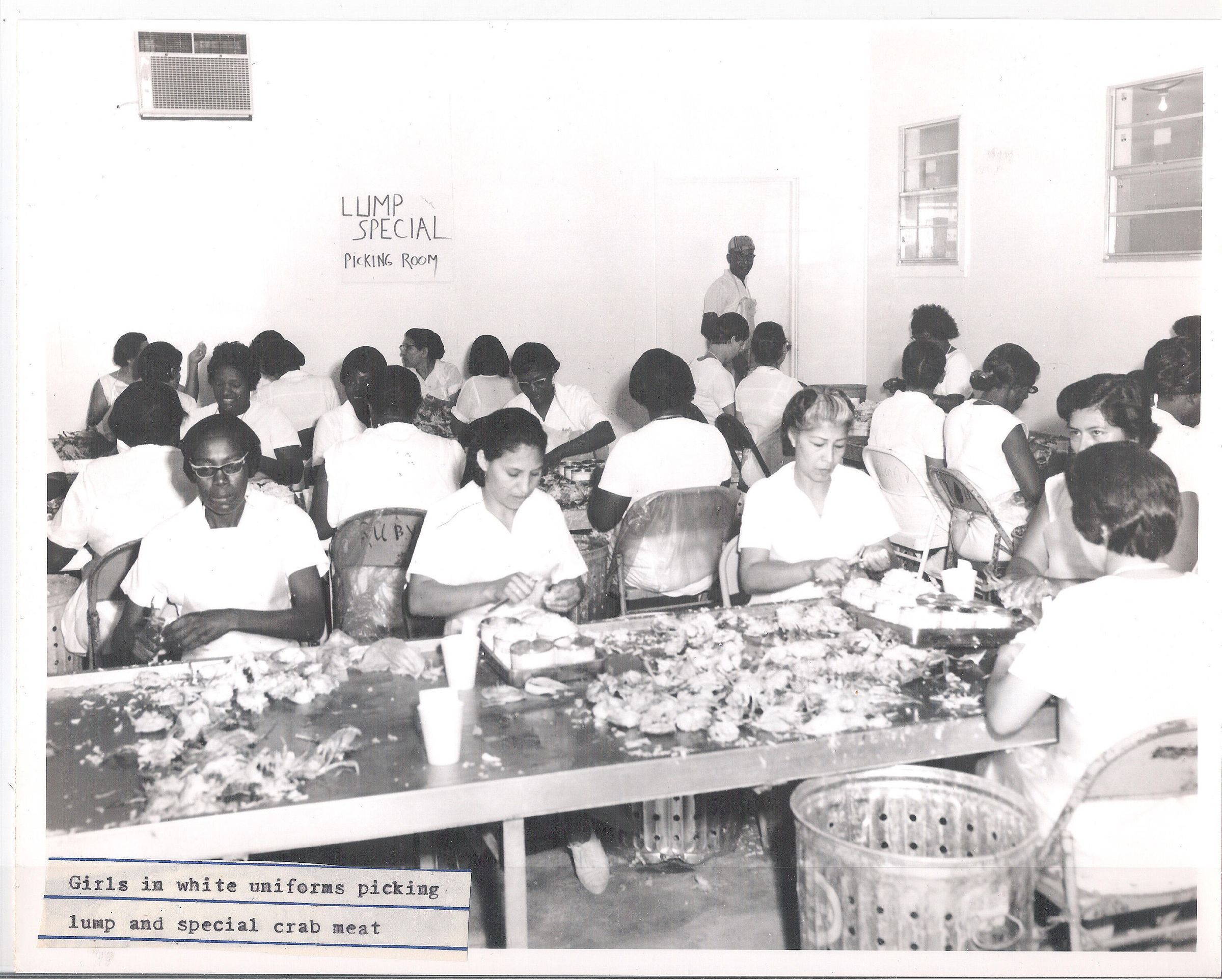 Women in White Uniforms picking lump and crab meat