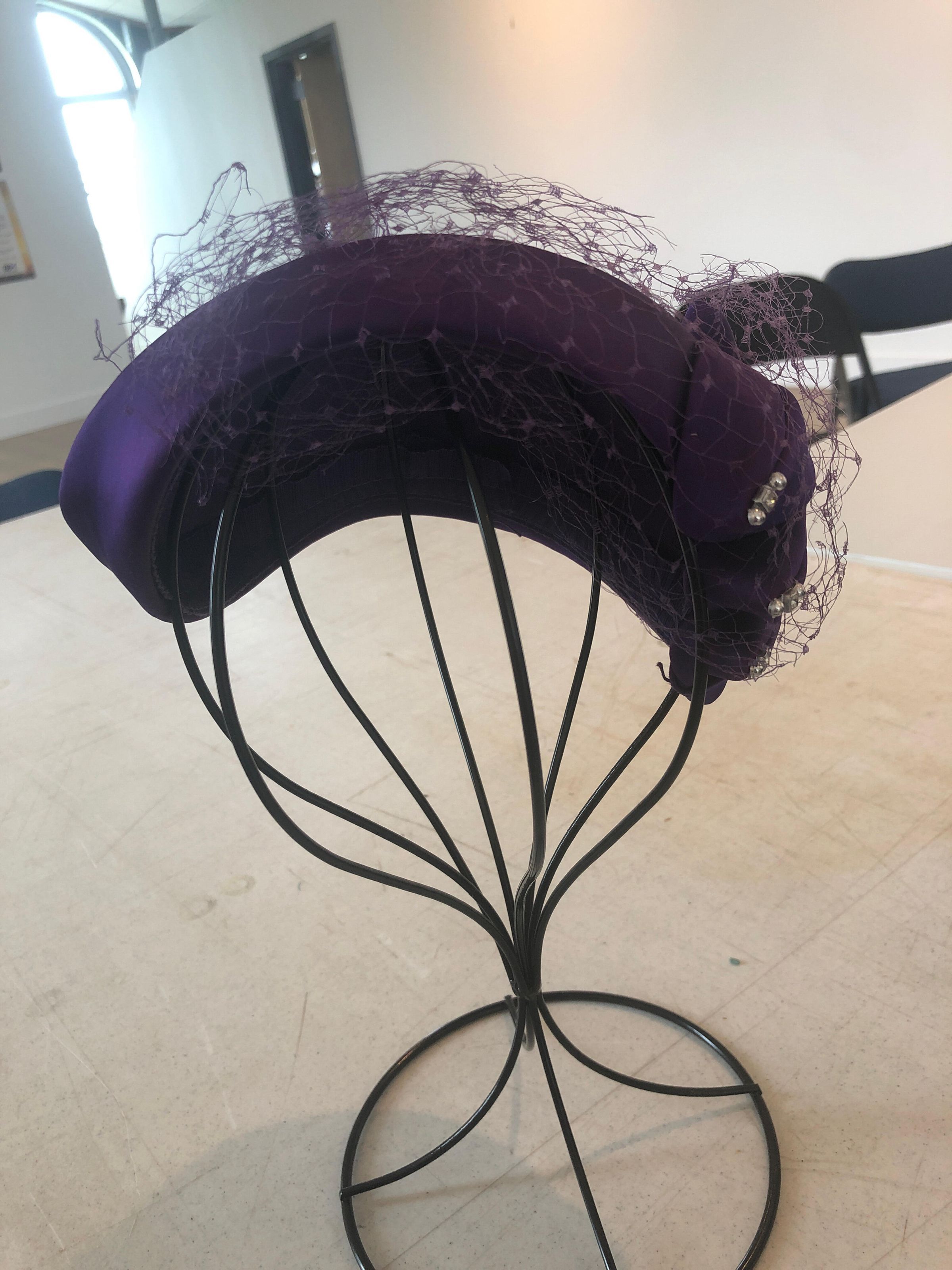 Purple Satin Hat with Fishnet