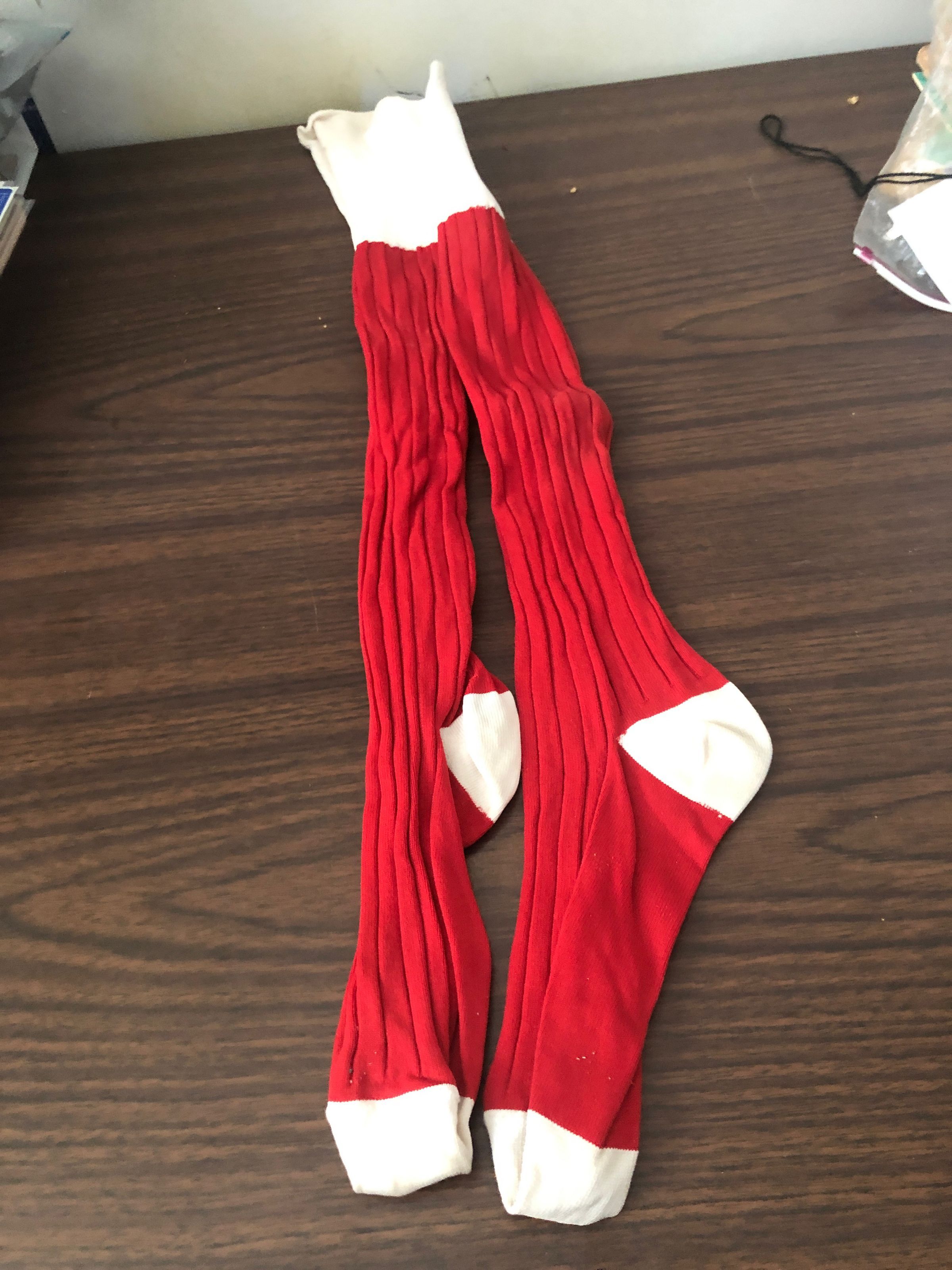 Red and White socks used as apart of the palacios Cheerleader Uniform