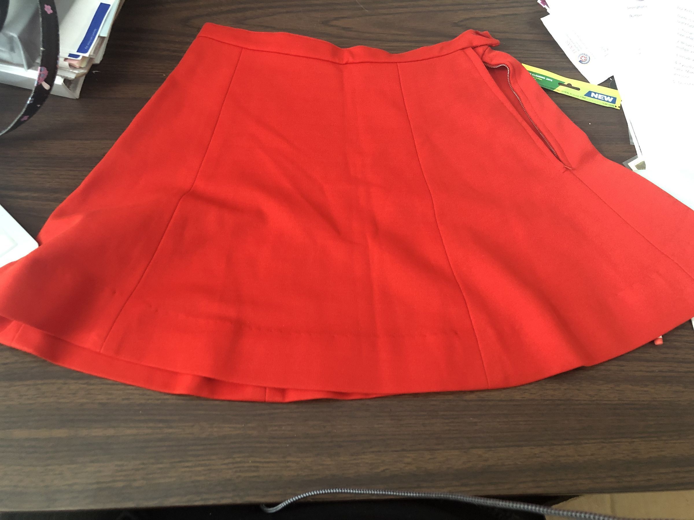 Red version of the skirt that the girls would wear as part of their uniform