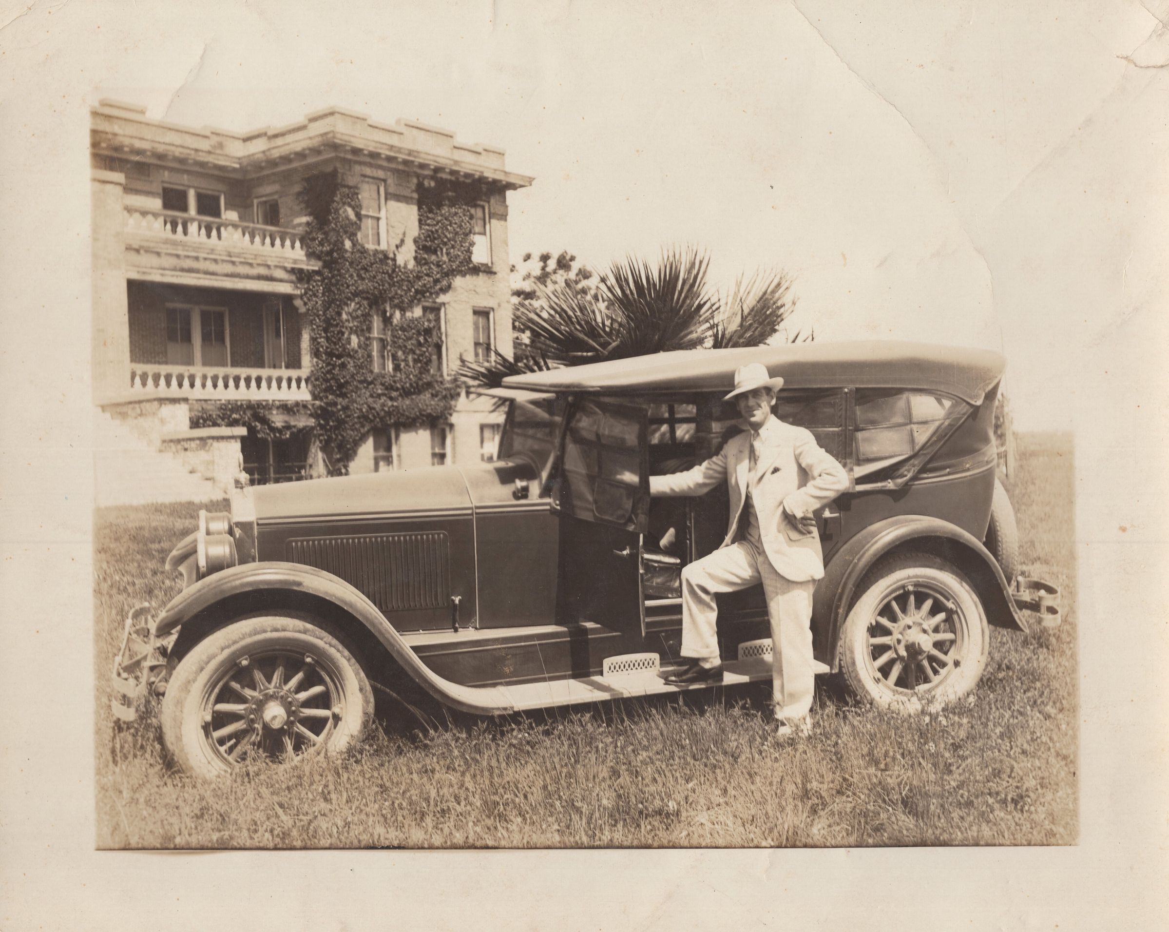 Ruel Foley in front of car in front of girls dormitory at Palacios College
