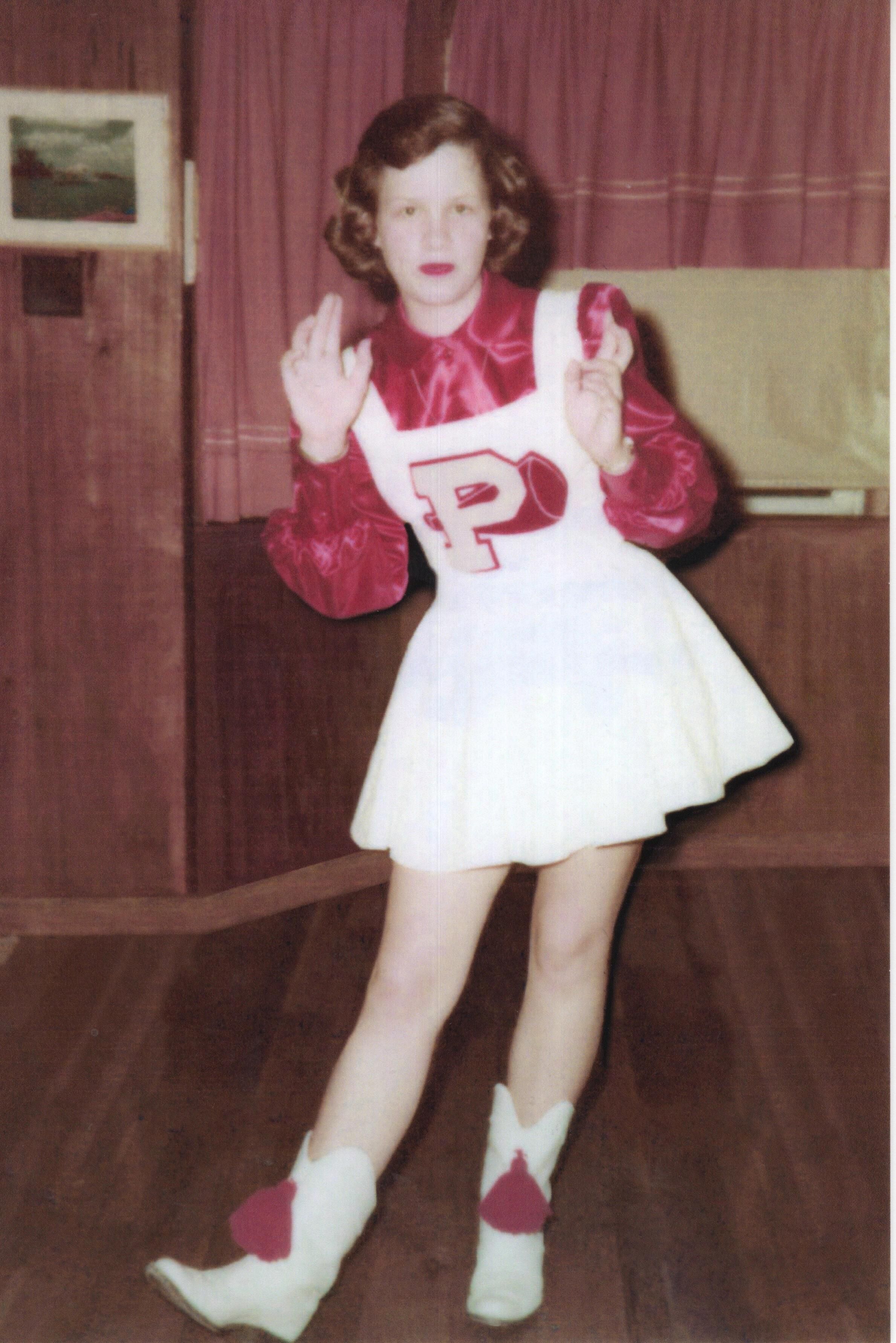 Sallie Hayes, 15 years old, in her cheerleading uniform.