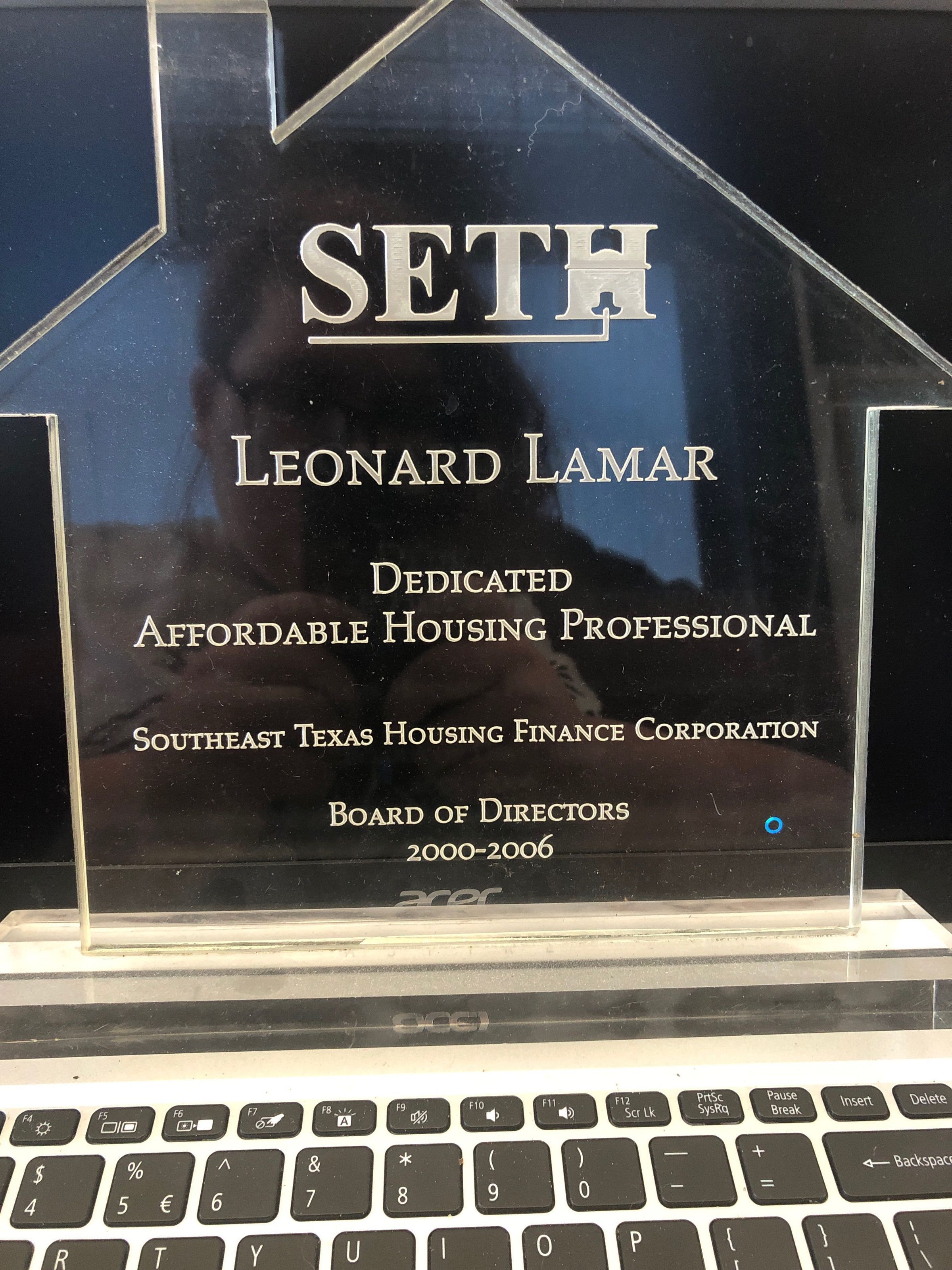 SETH Dedicated Affordable Housing Professional Award presented to Leonard Lamar from the SETH Finance Corporation Board of Directors | 2000-2006Collection