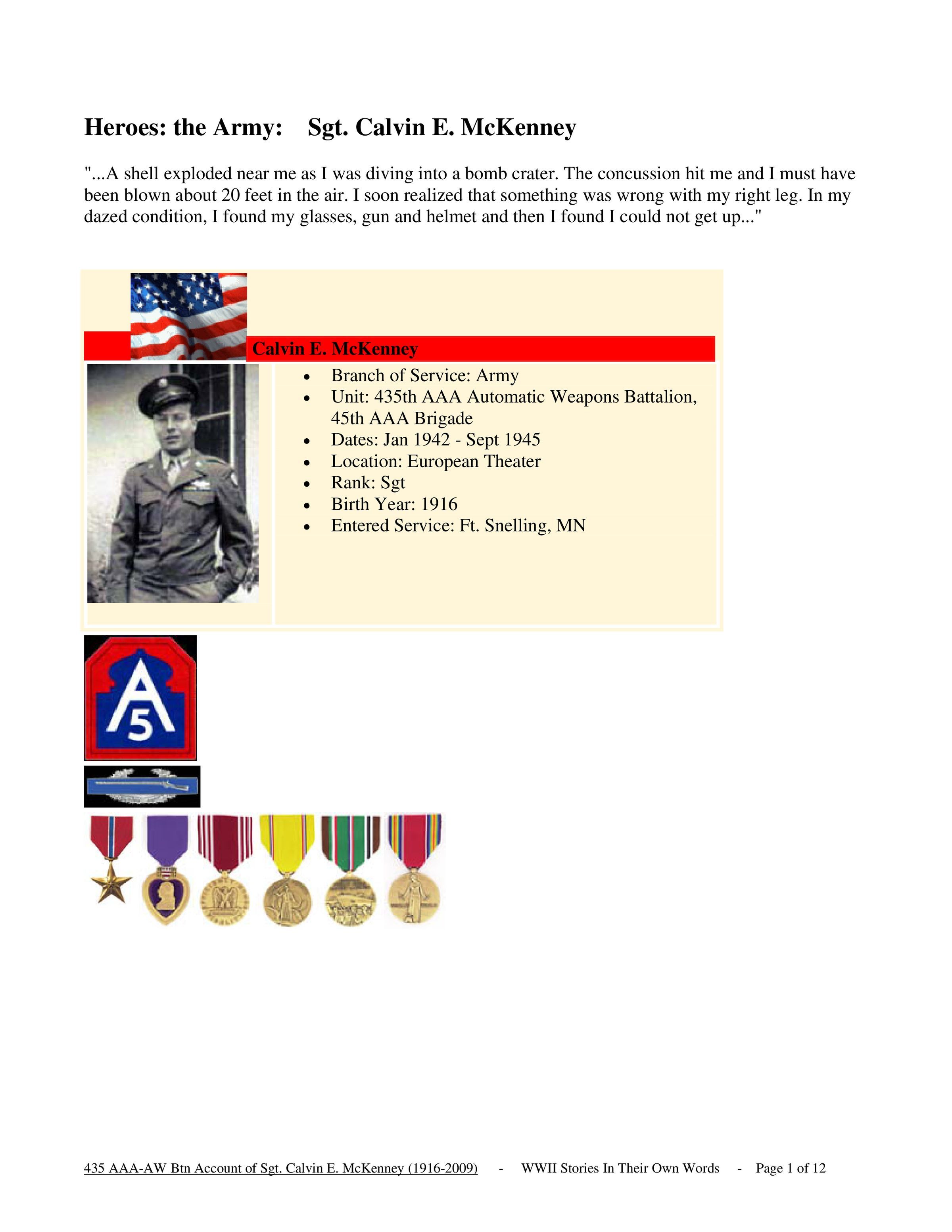 An Account by Sgt. Calvin E. McKenney