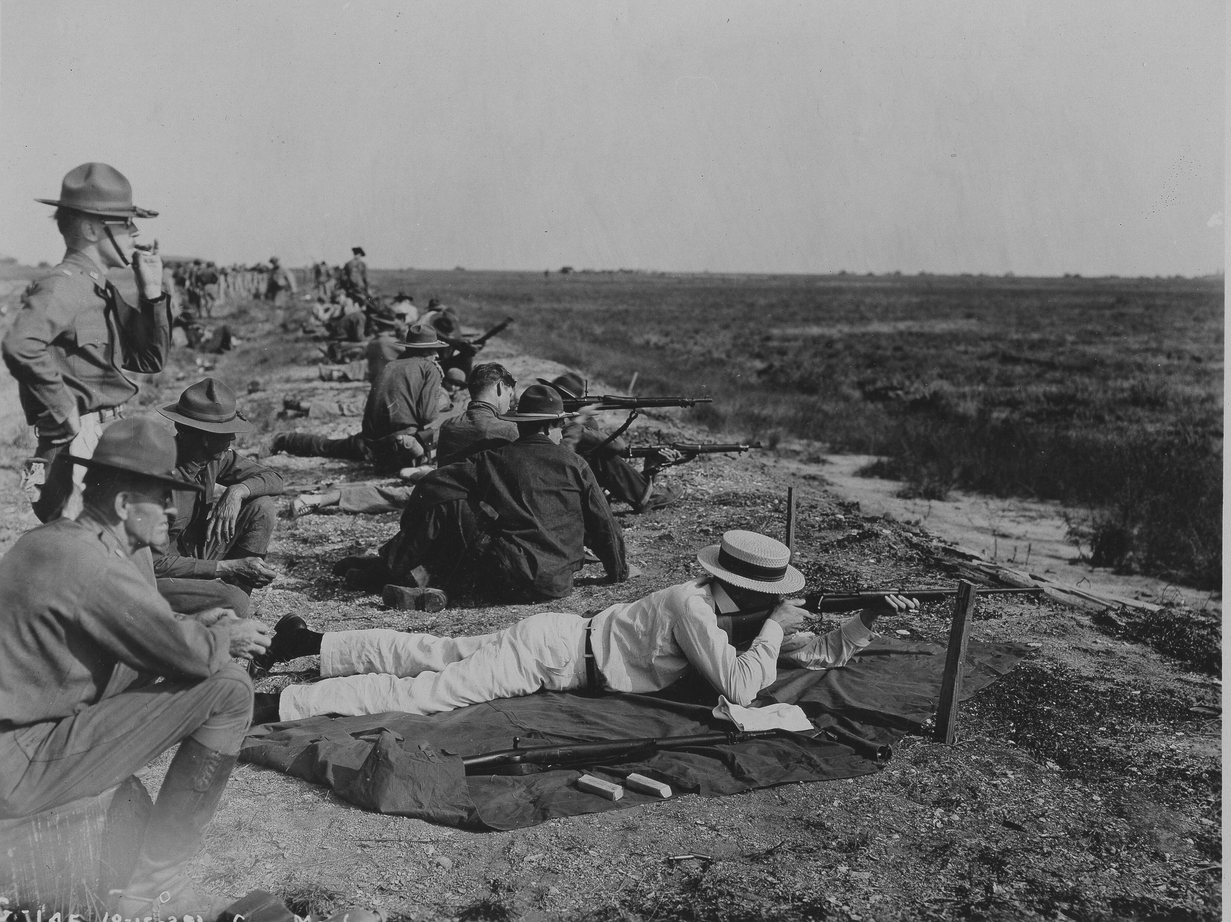 Men practicing their shooting.