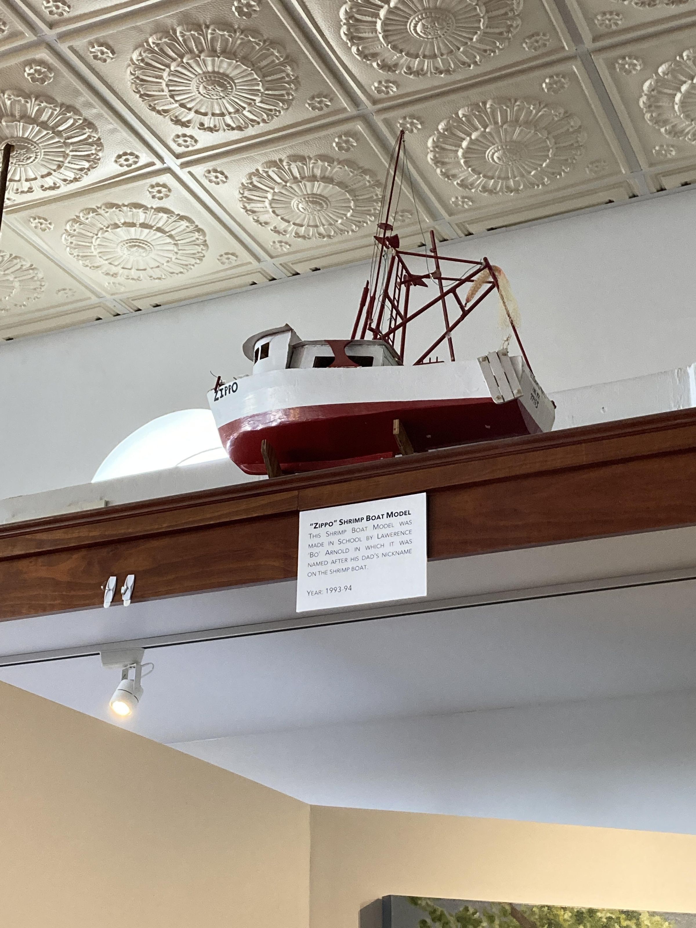 This shrimp boat model was created in school.