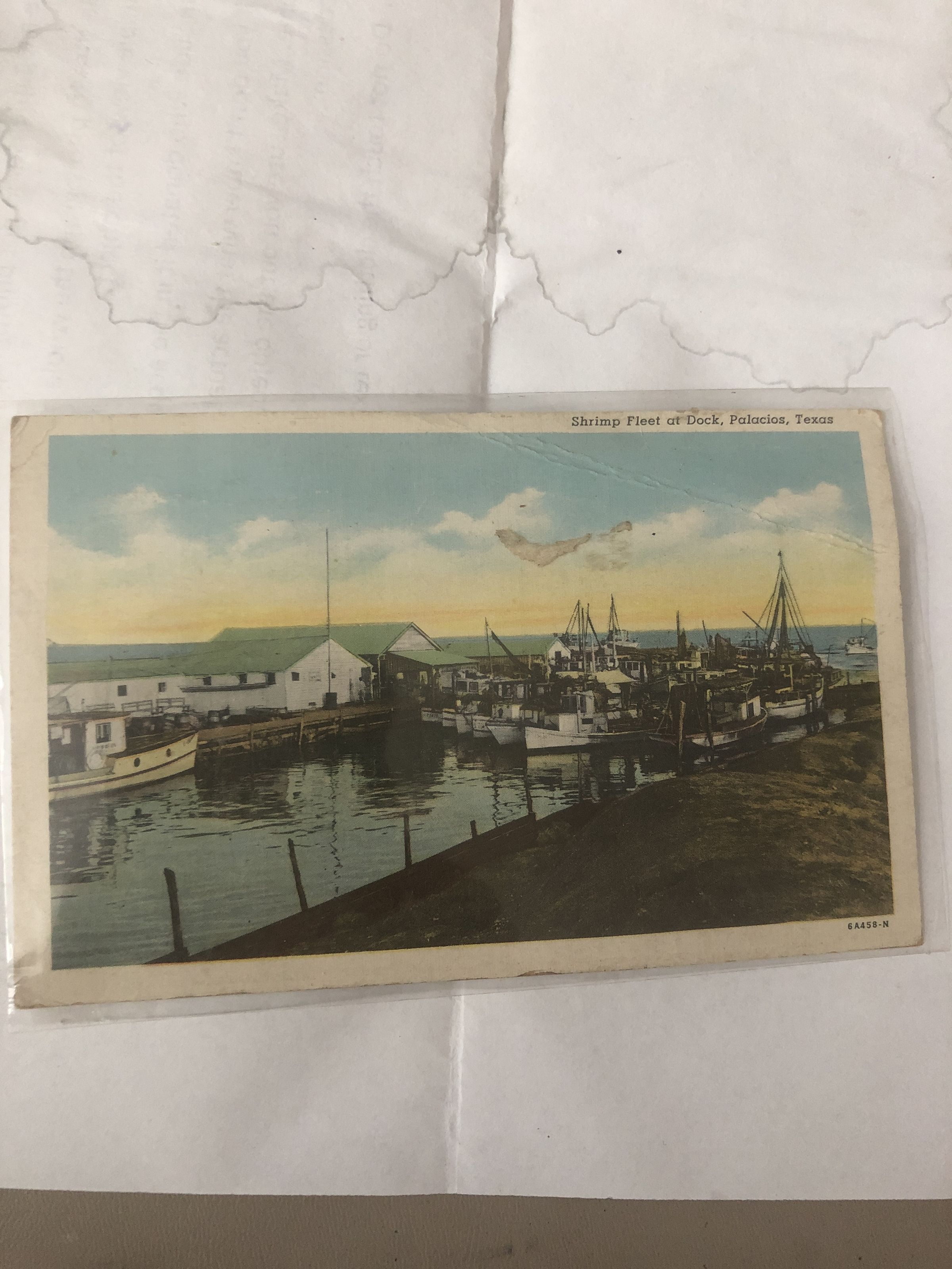 Shrimp Fleet at the Dock postcard that was taken in Palacios, Texas