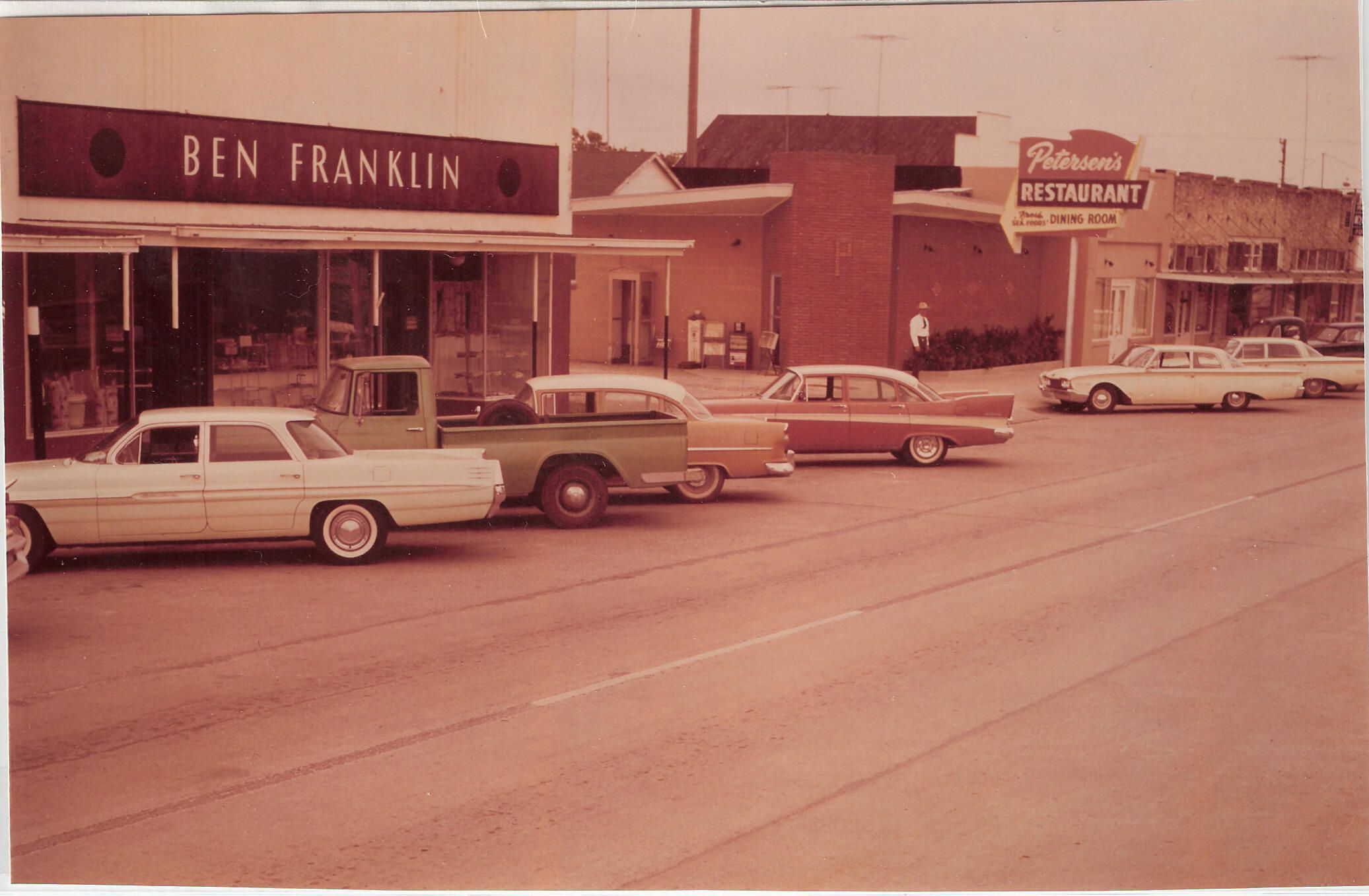 Street scene, Ben Franklin & Peaterson's resturant