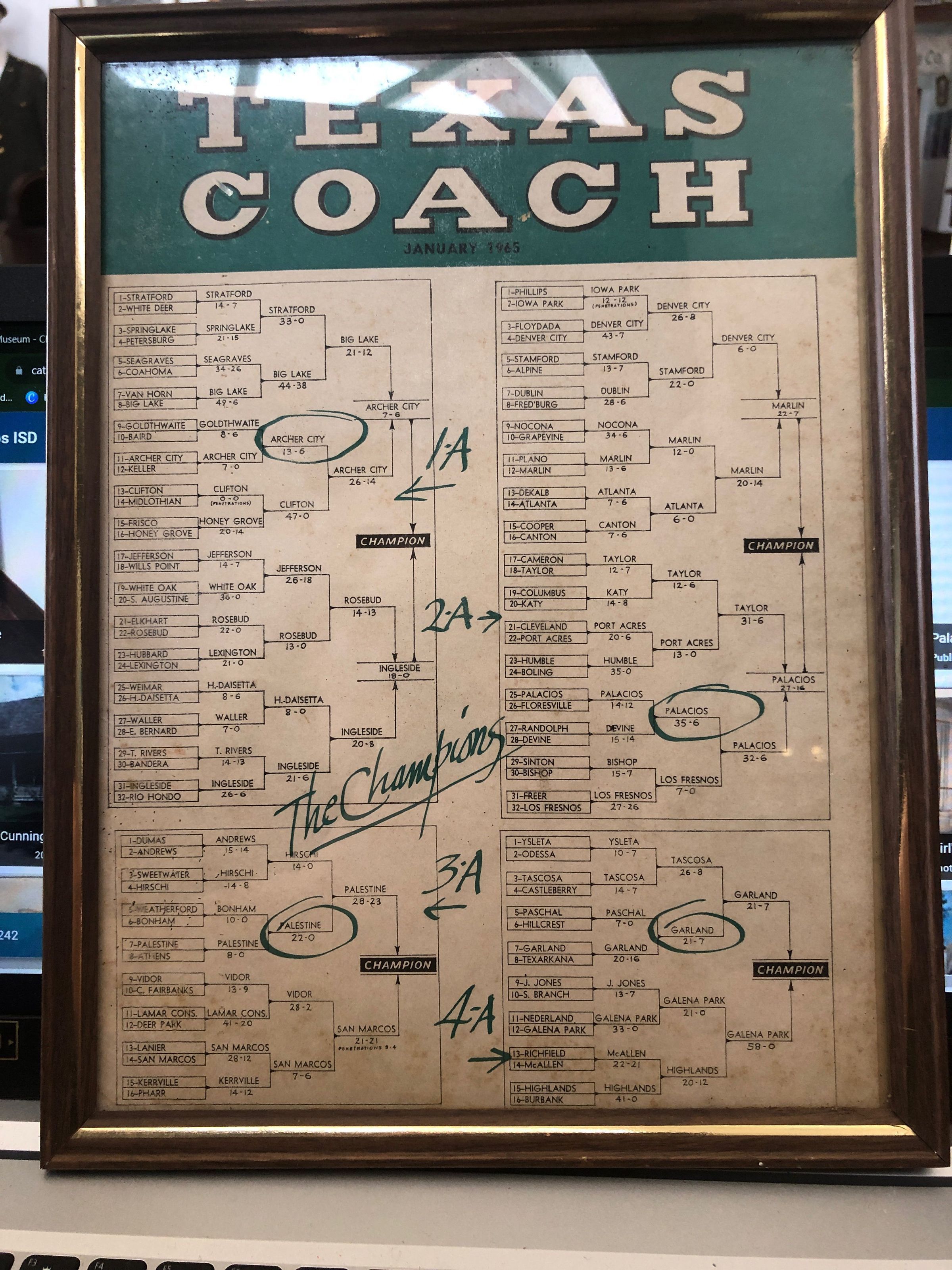 1-5Texas Football Championships of 1965 between 1A-4A