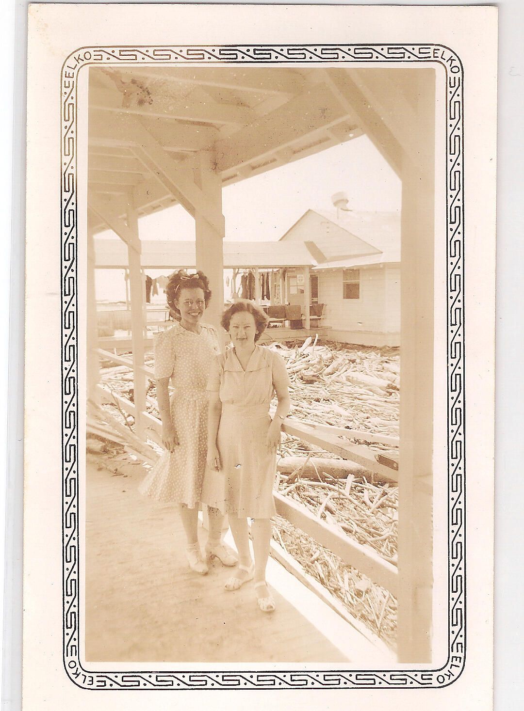 Two women standing on the walkway at the Camp Hulen Hospital after the hurricane in August 1942.