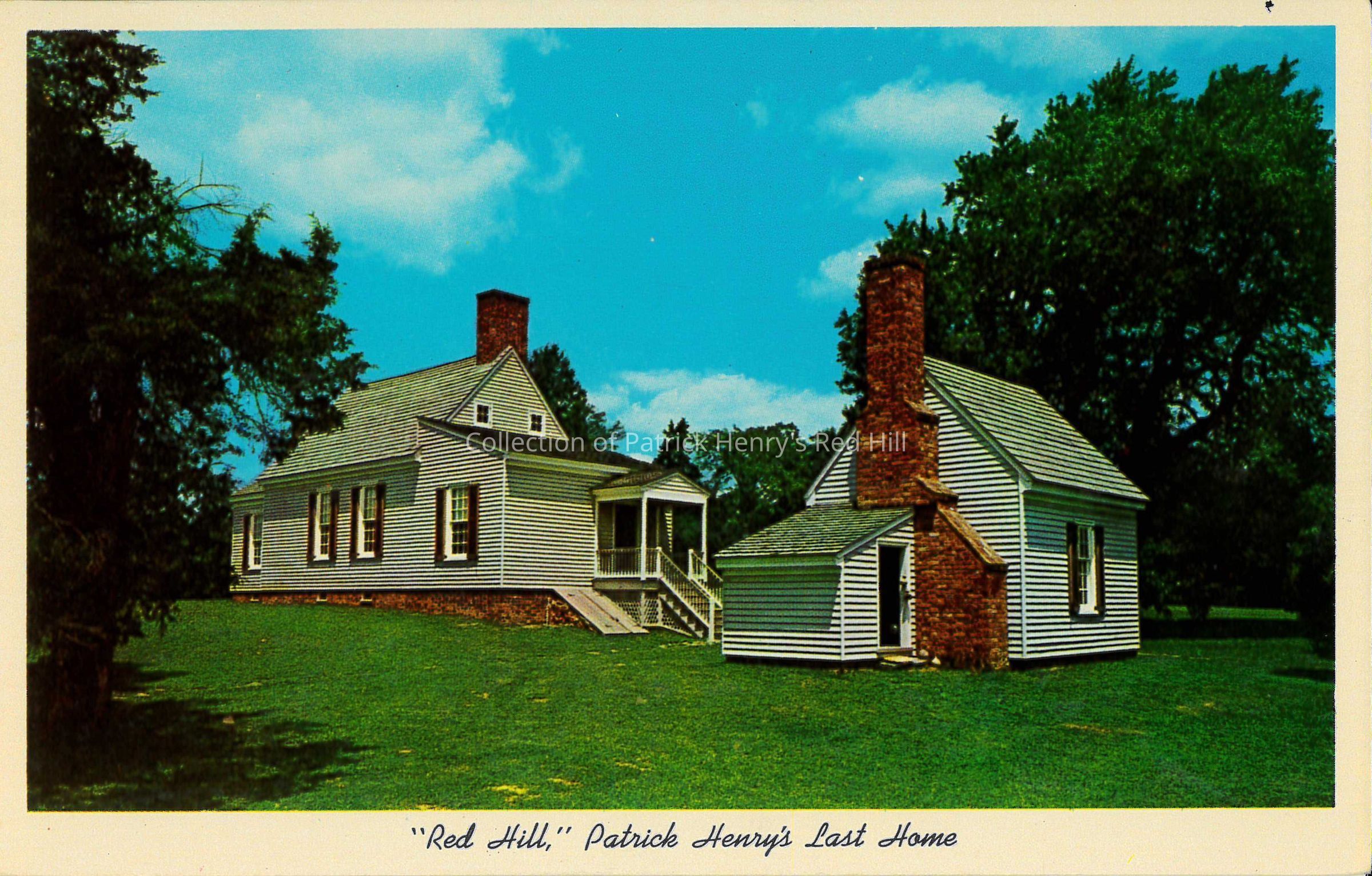 This color postcard shows the reconstructed Henry house and kitchen at Red Hill in 1960. The card was printed by the Curt Teich & Company in Chicago, Illinois, and distributed by The Camera Artist in Farmville, Virginia.