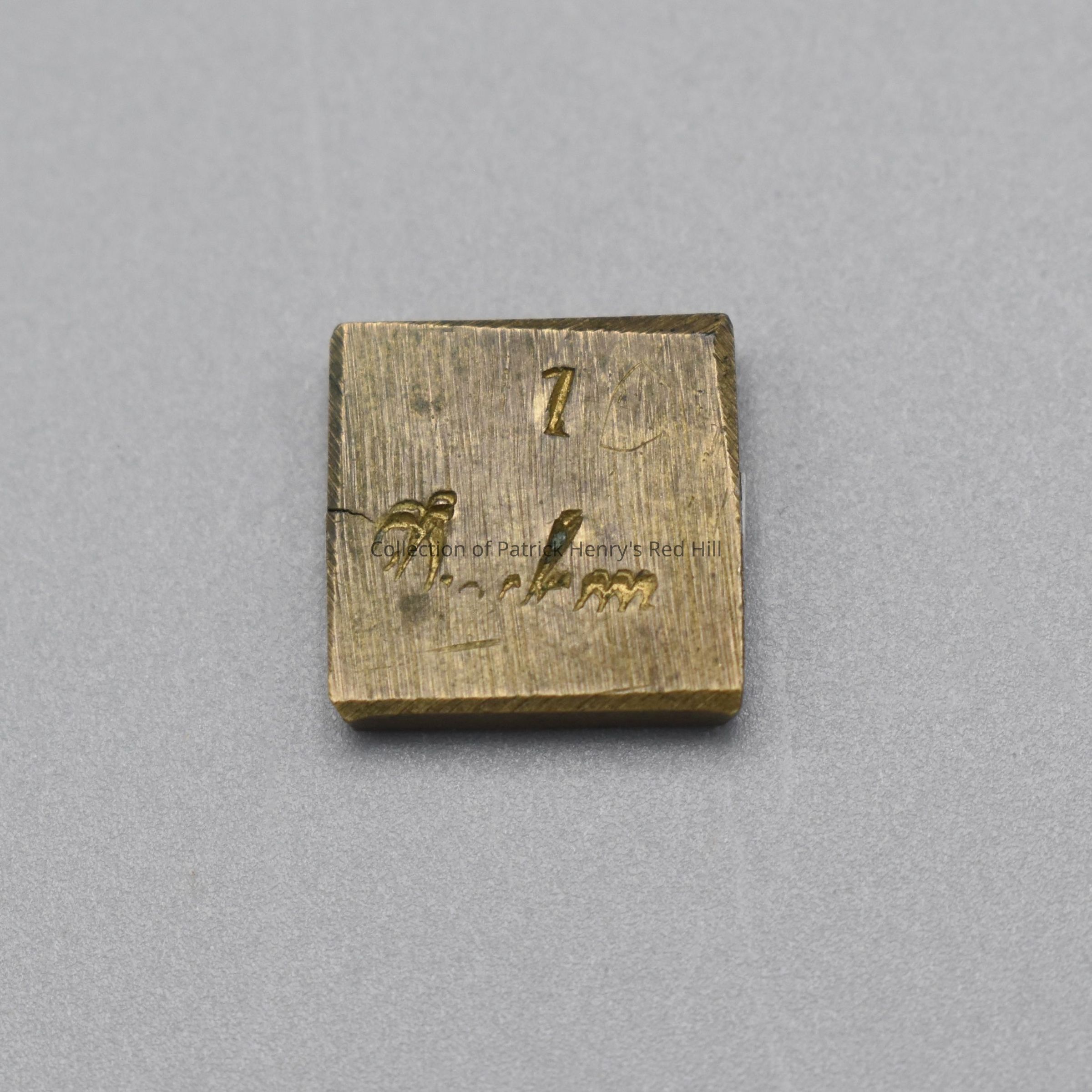 This one drachm brass weight comes from a larger set in the Henry family medicine chest (01.31.1).