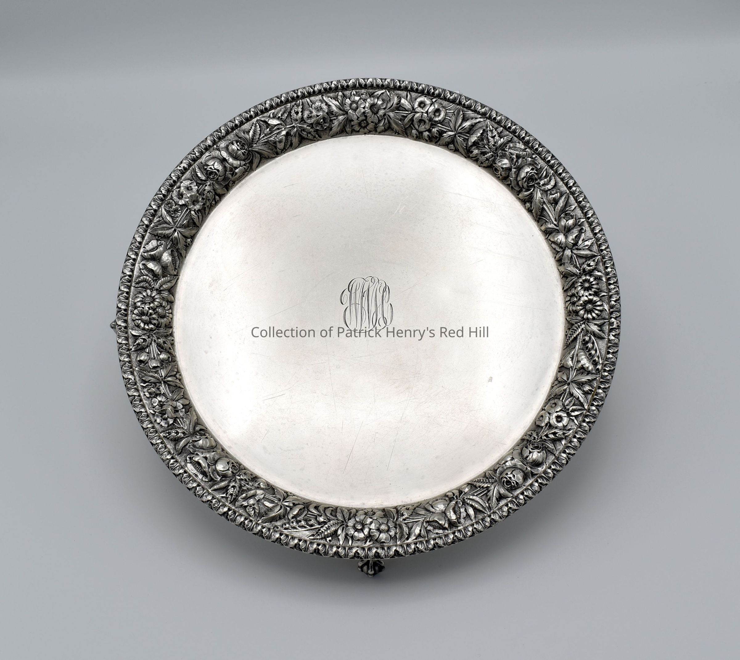 This repoussé salver is part of a set of two silver pieces belonging to William Wirt Henry (1831–1900), a grandson of Patrick Henry who lived at Red Hill.