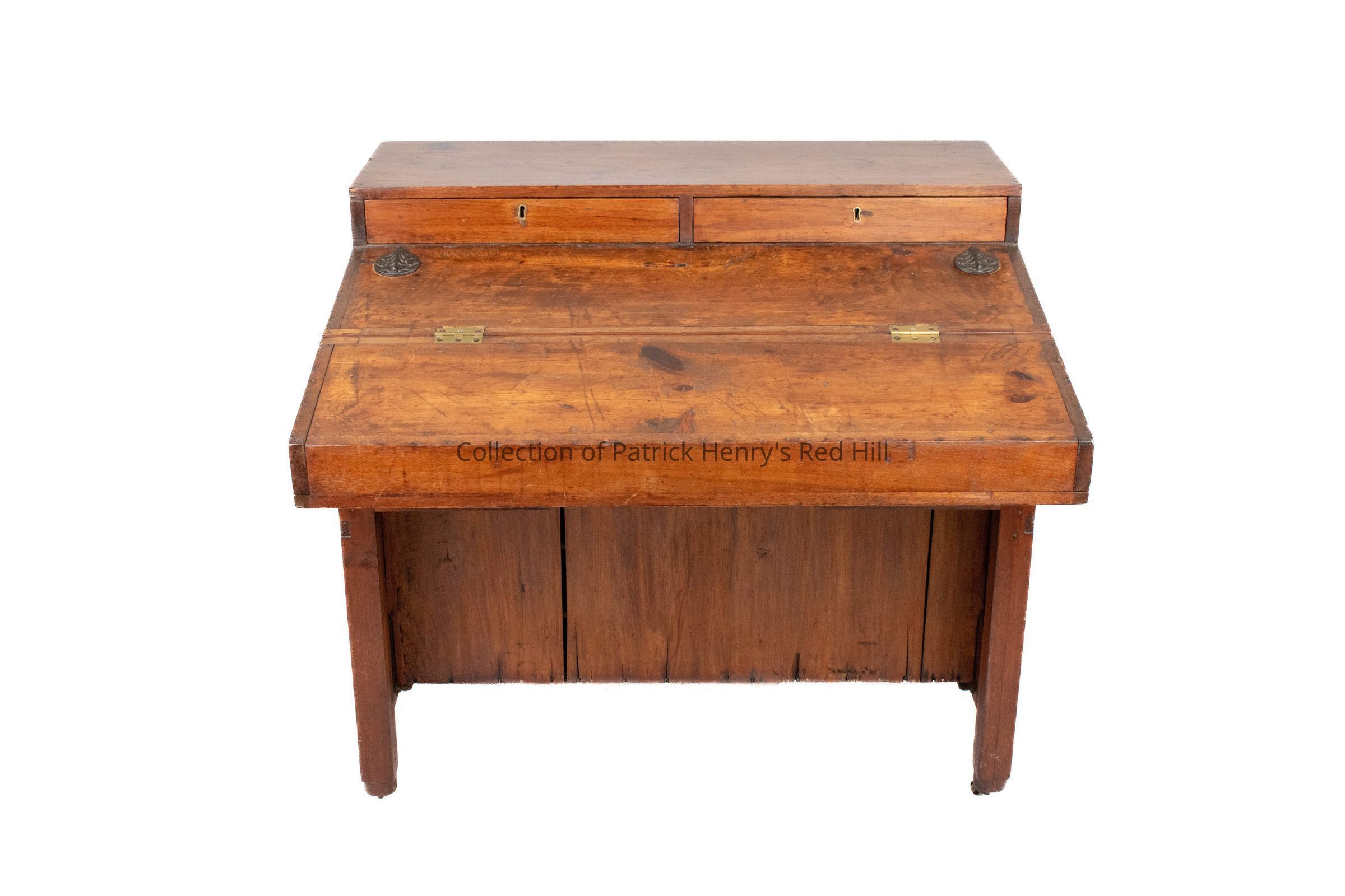 The desk is supposed to have belonged to Patrick Henry. It would fit his unique requirements as a simple country lawyer. Patrick Henry possibly passed the desk to his son, John (1796–1868). Following John's death, the desk may have appeared in his estate inventory of Red Hill, taken in 1868, as "1 Writing Desk" in the upstairs entry.