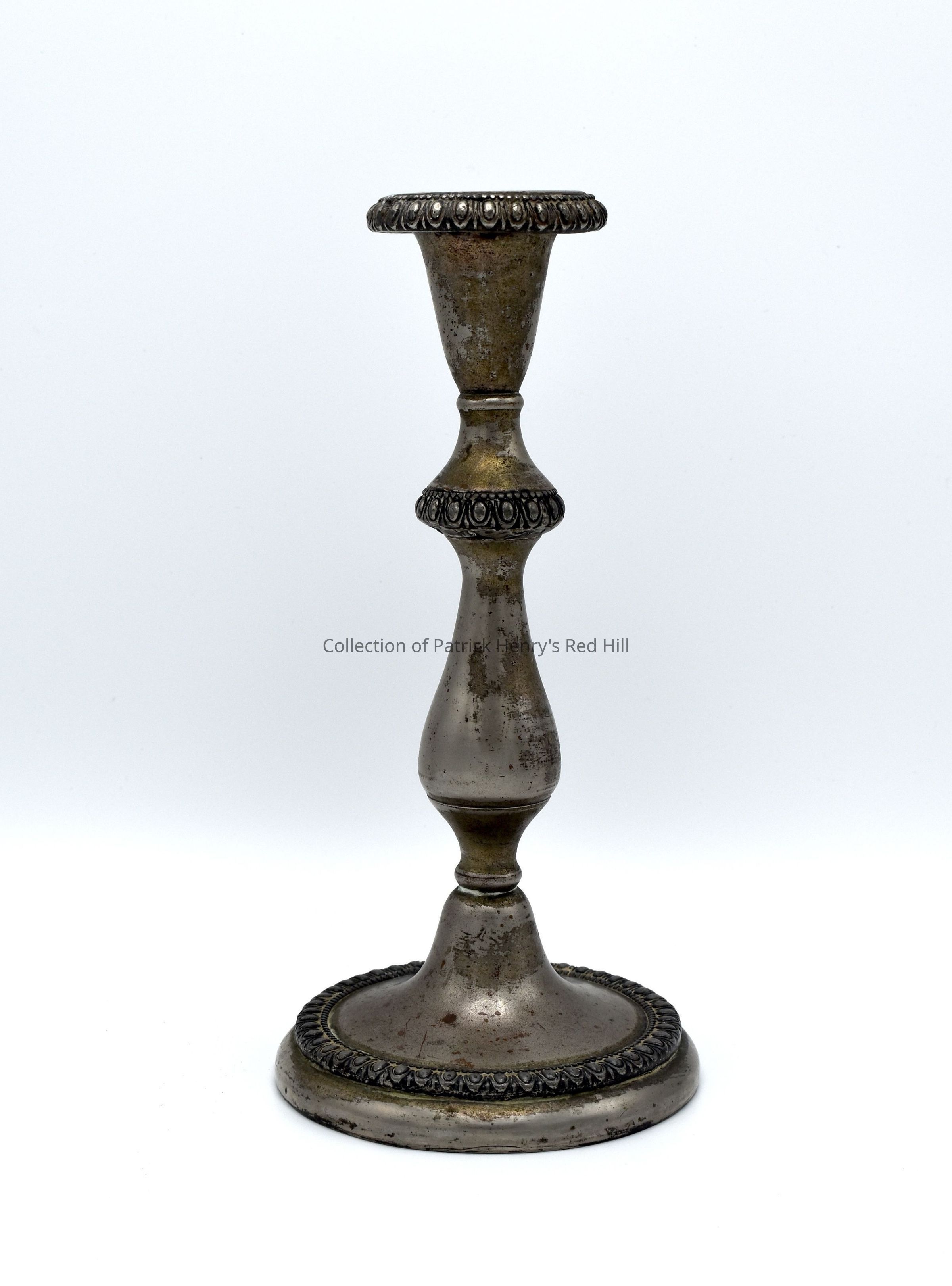 This candlestick holder is one of a pair and belonged to Lucy Gray Marshall Henry (1832–1922), wife of William Wirt Henry (1831–1900). William Wirt Henry was a grandson to Patrick Henry, descended from Patrick's youngest son John (1796–1868). He married Lucy Marshall in 1854. These candlesticks passed from Lucy Marshall Henry to her son James Marshall Henry I (1867–1909), then to his son James Marshall Henry II (1905–1970). According to a letter written by James Marshall Henry II to his son, James Marshall Henry III (1943–living) on August 16, 1969, "The silver candlesticks belonged to your great-grandmother Mrs. William Wirt Henry...." James Marshall Henry III donated these candlesticks to the Patrick Henry Memorial Foundation on May 8, 2021.