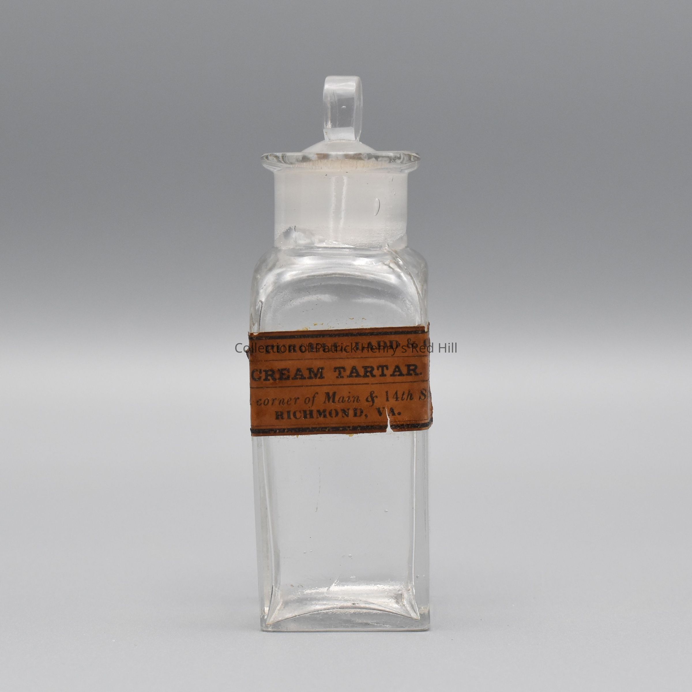 This cream tartar bottle comes from a larger set in the Henry family medicine chest (01.31.1).