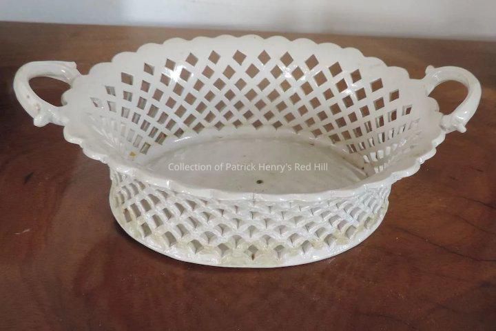"1 bre. Basket" and "1 bread basket" appears in Patrick Henry's 1799 and 1802 inventories of Red Hill, respectively. As it was not listed with Henry's silver pieces, it can be assumed the basket was ceramic rather than silver.