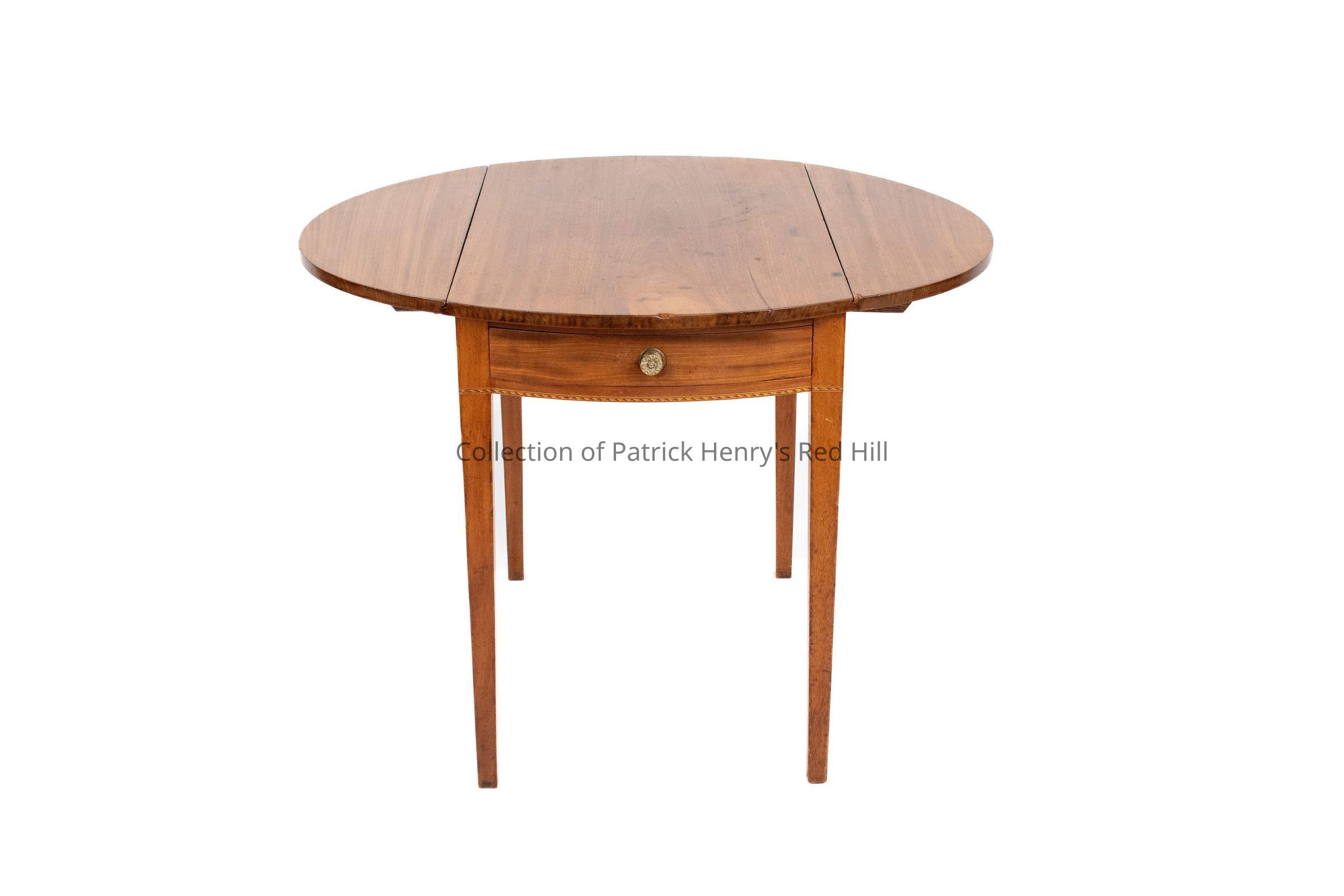 This drop-leaf breakfast table, called the "Virginia Pembroke Table," is believed to have been owned by Patrick Henry. It is made in the Hepplewhite style, so named after the English cabinetmaker George Hepplewhite (d. 1786), who created the "Cabinet-Maker and Upholsterer's Guide."