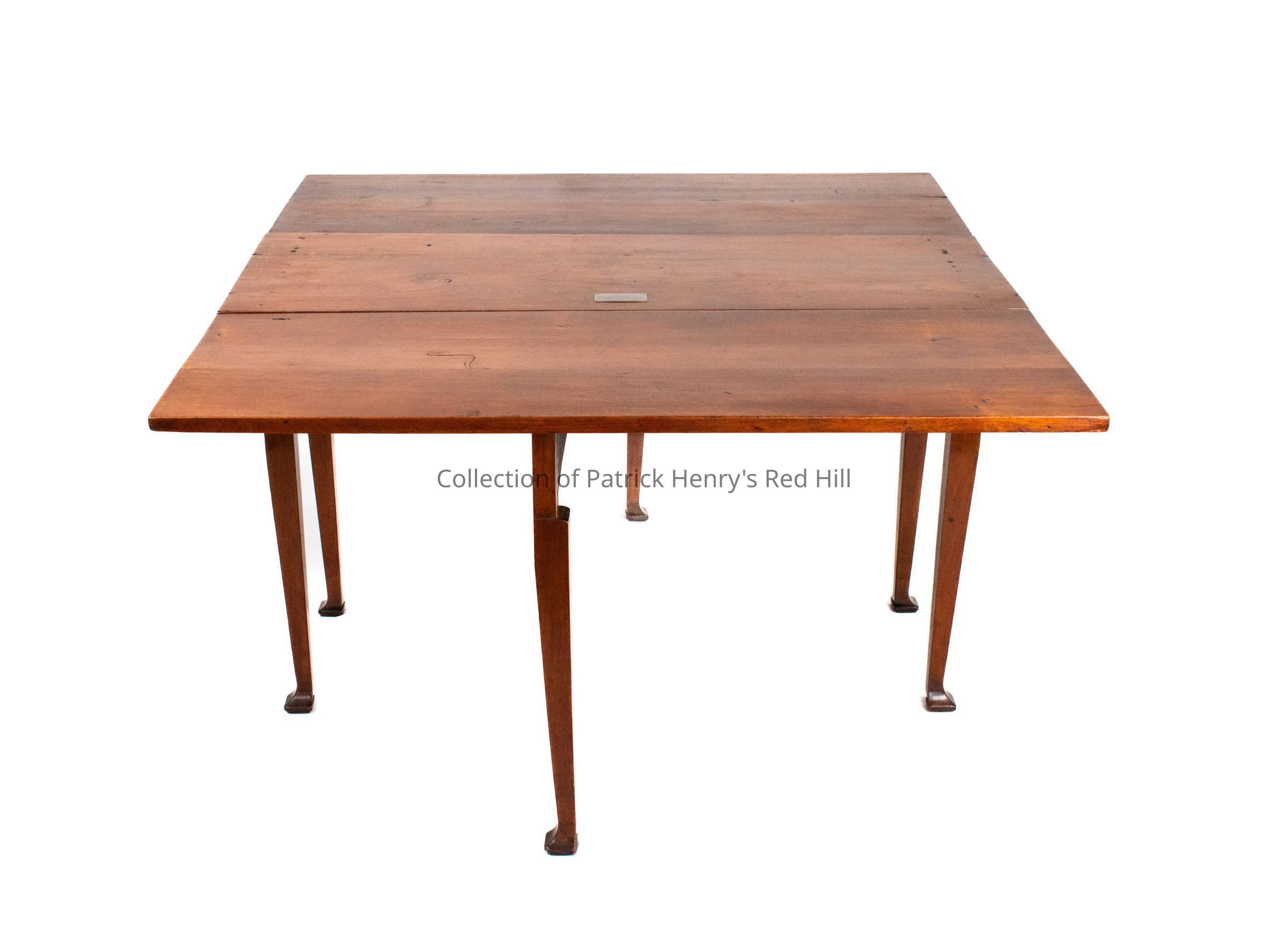 Little evidence points to this table's use at Red Hill, but it is believed to have been made in Virginia. After Henry's death, the table may have been inherited by his son, Patrick Henry Jr. (1783–1804), along with Long Island plantation. It was then passed to Henry Jr.'s daughter, Elvira Ann Patrick Henry (1804–1870); then to Elvira's daughter Ann "Nannie" Carrington Clark Bruce (1831–1900).