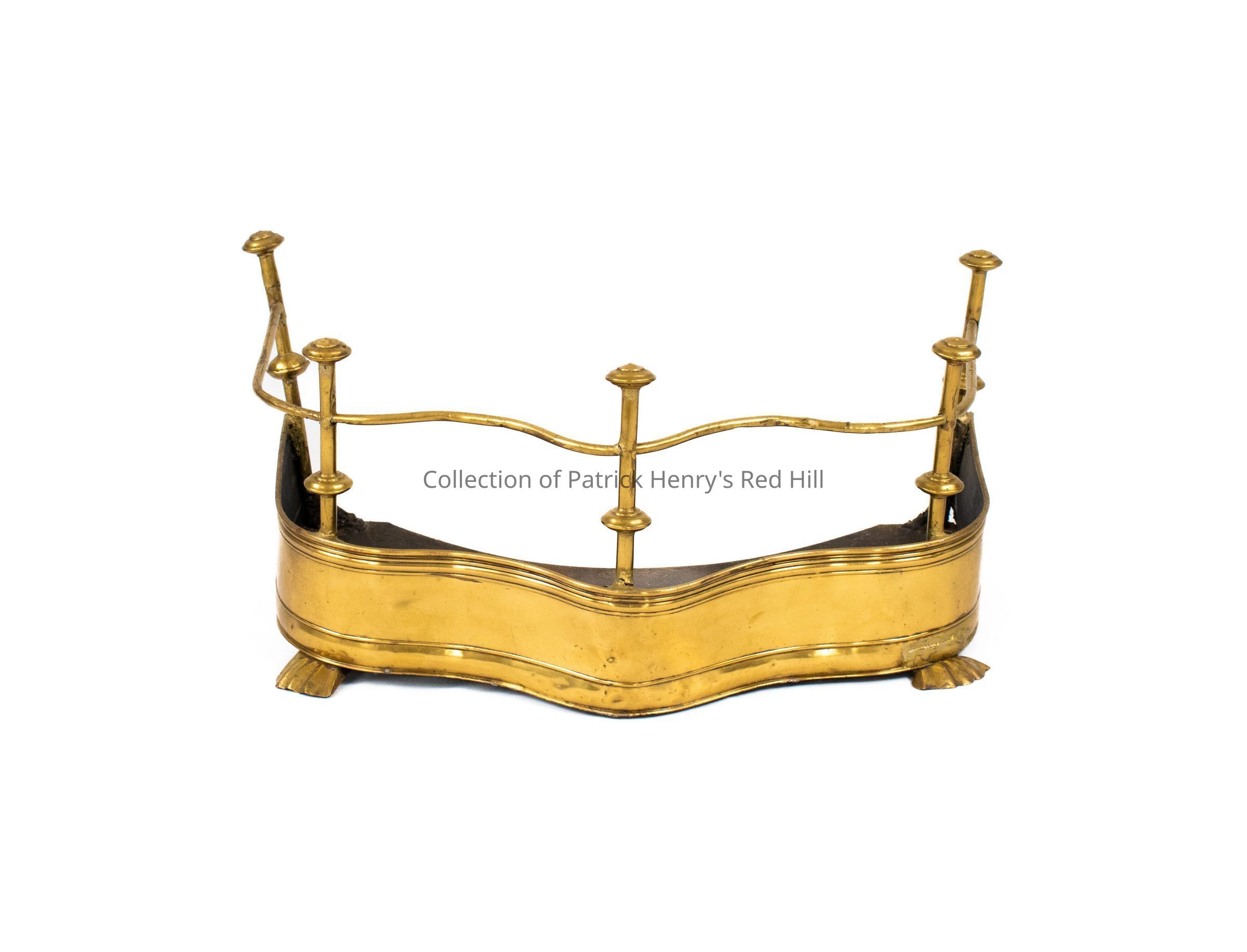 This brass fire fender is said to have belonged to Patrick Henry. Fenders like this one were historically used to help keep logs from rolling out onto the floor. Although it is unusual in exact details and proportions, it is of the general sort imported into North America for ubiquitous domestic use in the latter 18th century.